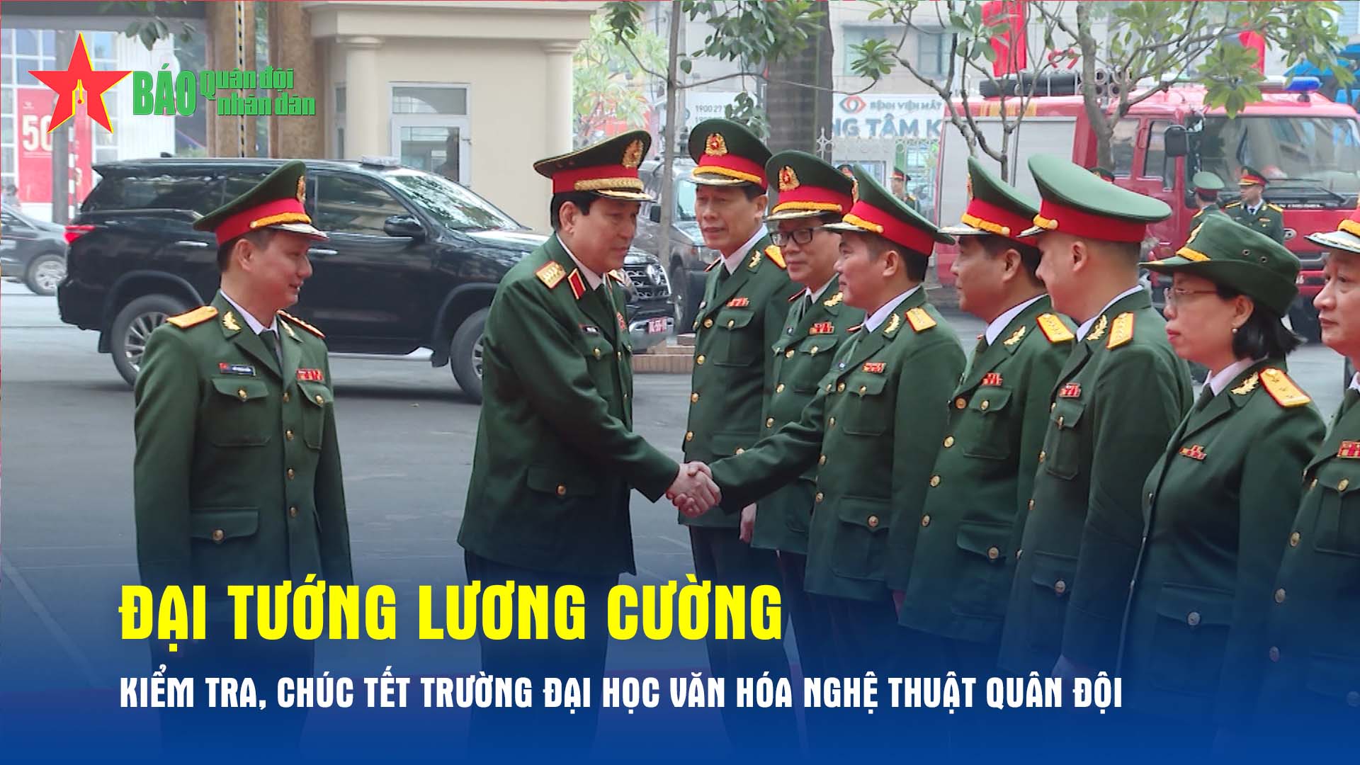 Chiều 31-1, Đại tướng Lương Cường, Ủy viên Bộ Chính trị, Ủy viên thường vụ Quân ủy Trung ương, Chủ nhiệm Tổng cục Chính trị Quân đội nhân dân Việt Nam đến thăm, chúc tết và trao quà của Quân ủy Trung ương, Bộ Quốc phòng tặng cán bộ, giảng viên, học viên Trường Đại học Văn hóa nghệ thuật Quân đội nhân dịp Tết Giáp Thìn 2024.