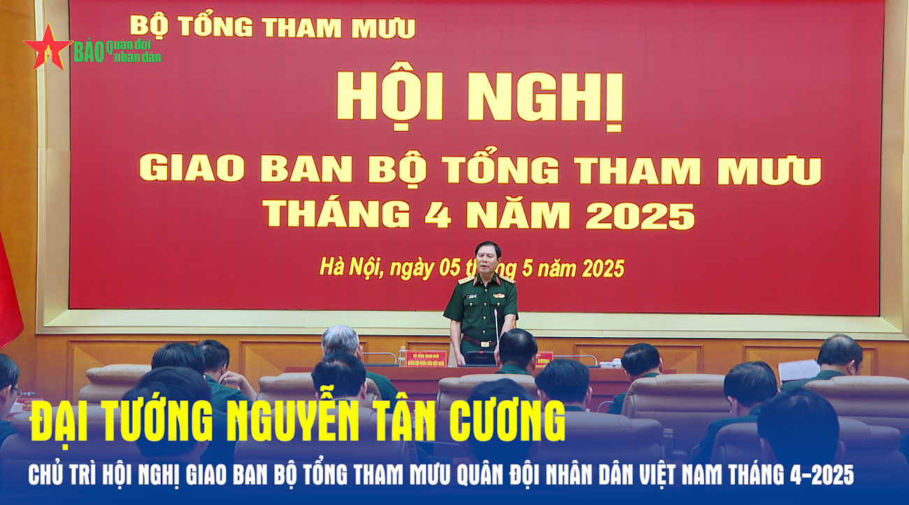 Chiều 5-5, tại Hà Nội, Đại tướng Nguyễn Tân Cương, Ủy viên Trung ương Đảng, Ủy viên Thường vụ Quân ủy Trung ương, Tổng Tham mưu trưởng Quân đội nhân dân Việt Nam, Thứ trưởng Bộ Quốc phòng chủ trì Hội nghị giao ban Bộ Tổng Tham mưu Quân đội nhân dân Việt Nam tháng 4-2025.