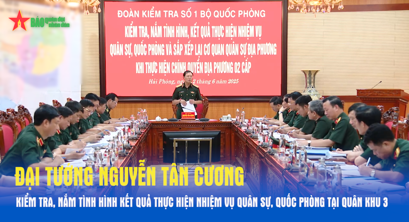 Sáng 12-6, Đoàn kiểm tra số 1 Bộ Quốc phòng do Đại tướng Nguyễn Tân Cương, Ủy viên Trung ương Đảng, Ủy viên Thường vụ Quân ủy Trung ương, Tổng Tham mưu trưởng Quân đội nhân dân (QĐND) Việt Nam, Thứ trưởng Bộ Quốc phòng làm trưởng đoàn đã kiểm tra nắm tình hình kết quả thực hiện nhiệm vụ quân sự, quốc phòng và sắp xếp lại cơ quan quân sự địa phương khi thực hiện chính quyền địa phương 2 cấp tại Quân khu 3.