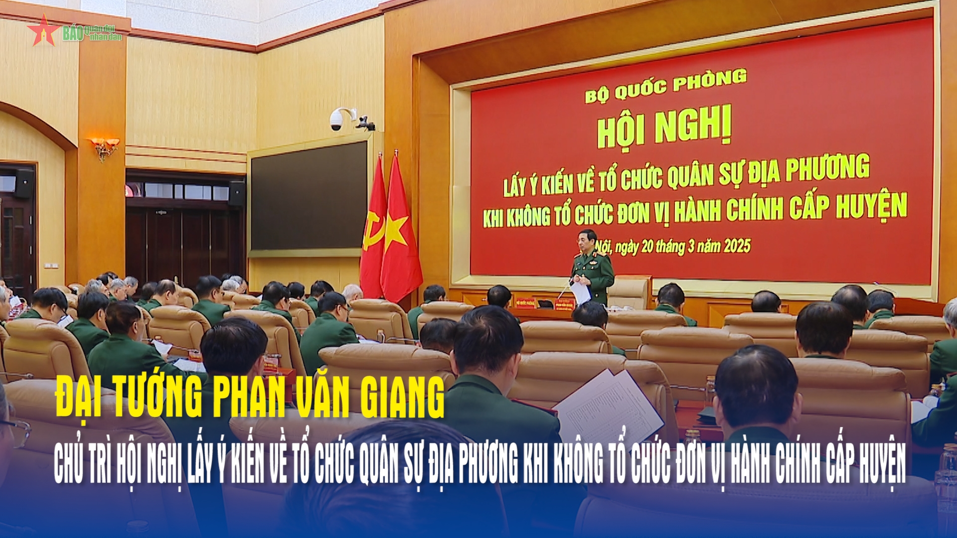 Sáng 19-3, Đại tướng Phan Văn Giang, Ủy viên Bộ Chính trị, Phó bí thư Quân ủy Trung ương (QUTƯ), Bộ trưởng Bộ Quốc phòng chủ trì Hội nghị lấy ý kiến vể tổ chức quân sự địa phương khi không tổ chức đơn vị hành chính cấp huyện.