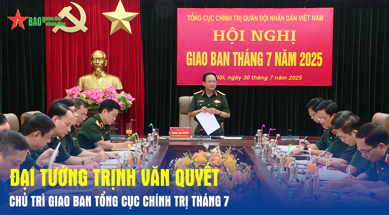Chiều 30-7, Đại tướng Trịnh Văn Quyết, Bí thư Trung ương Đảng, Ủy viên Thường vụ Quân ủy Trung ương, Chủ nhiệm Tổng cục Chính trị Quân đội nhân dân Việt Nam chủ trì Hội nghị giao ban đánh giá kết quả thực hiện nhiệm vụ công tác Đảng, công tác chính trị tháng 7, triển khai nhiệm vụ trọng tâm công tác tháng 8-2025.