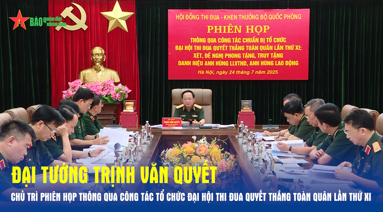 Chiều 24-7, Đại tướng Trịnh Văn Quyết, Bí thư Trung ương Đảng, Ủy viên Thường vụ Quân ủy Trung ương, Chủ nhiệm Tổng cục Chính trị Quân đội nhân dân (QĐND) Việt Nam, Chủ tịch Hội đồng Thi đua - Khen thưởng Bộ Quốc phòng chủ trì phiên họp, thông qua công tác chuẩn bị tổ chức Đại hội Thi đua Quyết thắng toàn quân lần thứ XI...