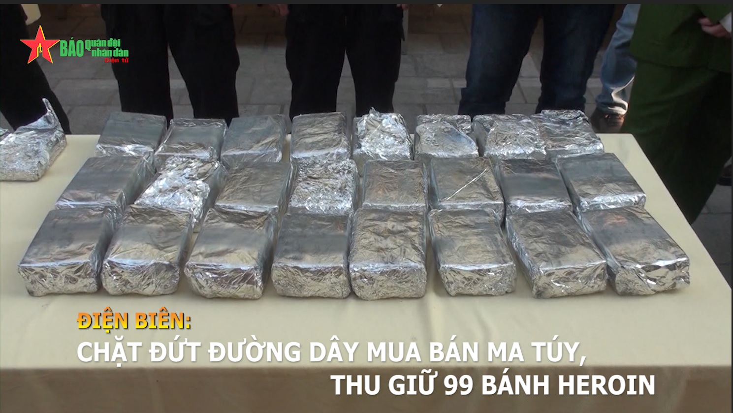 Công an tỉnh Điện Biên, BĐBP tỉnh Điện Biên triệt phá đường dây mua bán, vận chuyển trái phép chất ma túy hoạt động liên tỉnh, xuyên quốc gia, thu giữ trên 35 kg ma túy bao gồm 99 bánh heroin và 01 kg ma túy đá.