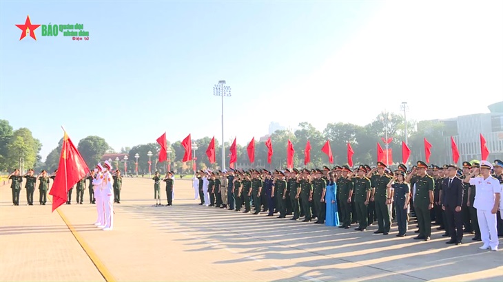 Sáng 11-10, Đoàn đại biểu dự Đại hội đại biểu Đoàn TNCS Hồ Chí Minh Quân đội lần thứ X, thành kính tổ chức Lễ báo công dâng Bác và vào Lăng viếng Chủ tịch Hồ Chí Minh.