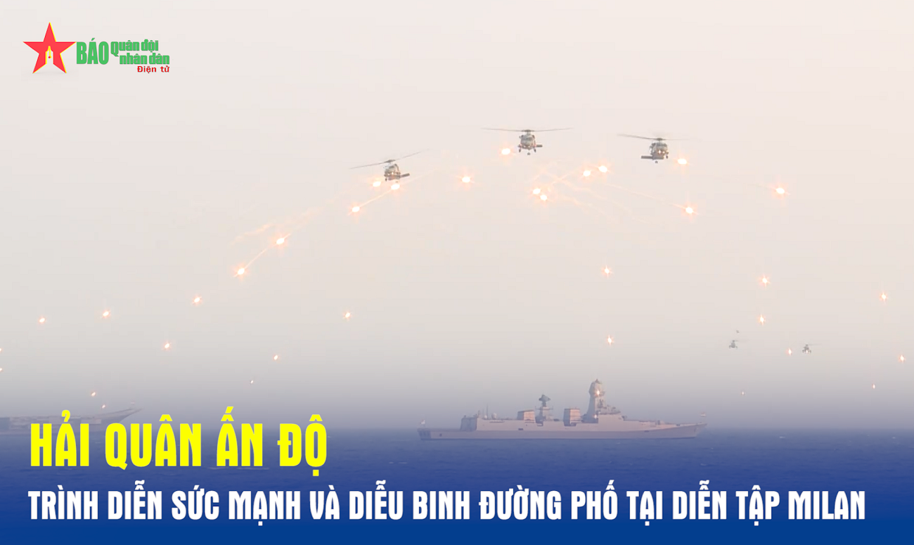 Chiều 22-2, Hải Quân Ấn Độ đã trình diễn sức mạnh và diễu binh đường phố tại khu vực bờ biển thành phố Visakhapatnam (Ấn Độ); trình diễn và diễu binh đường phố lần này là một trong những hoạt động nổi bật của Diễn tập Hải quân đa phương MILAN năm 2024.
