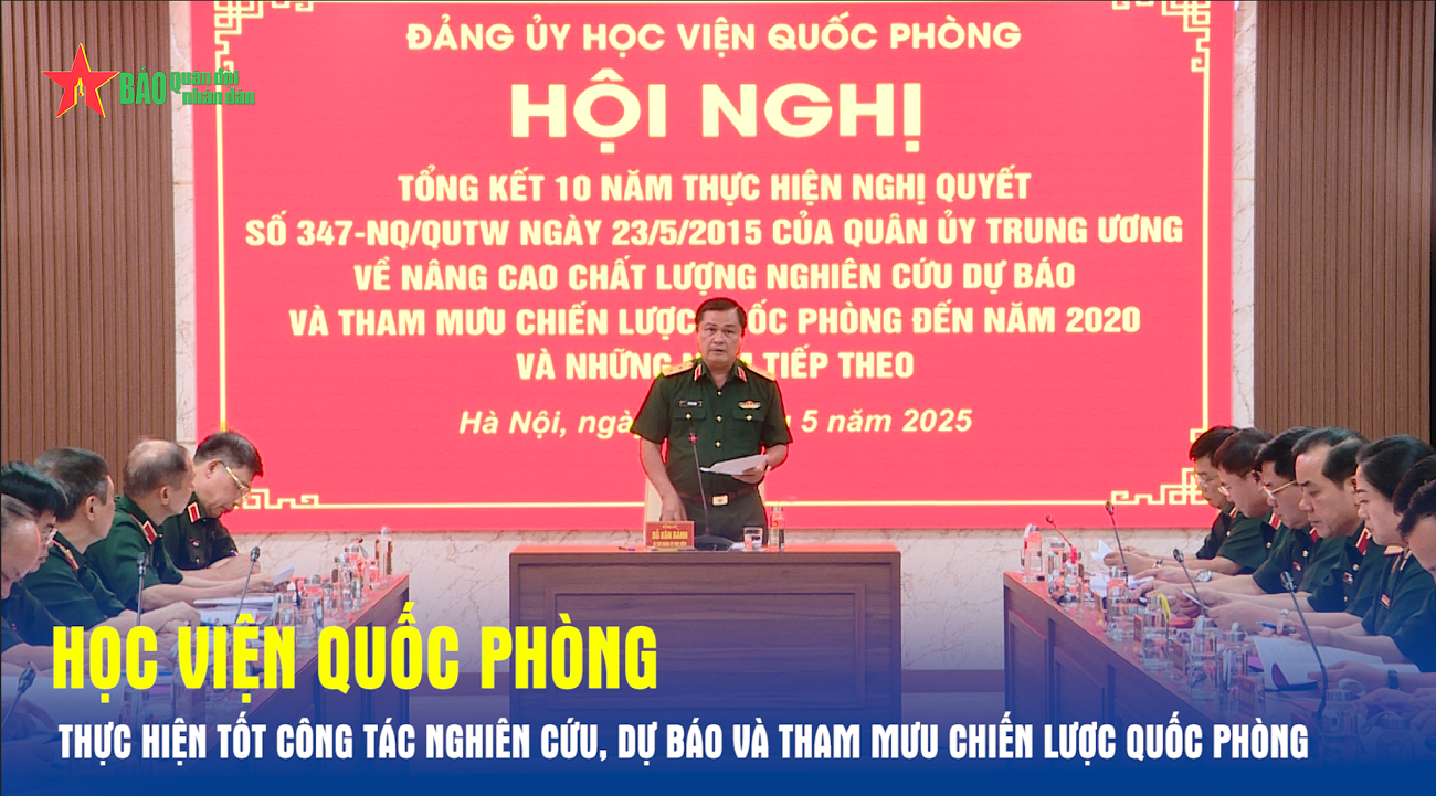 Chiều 22-5, Trung tướng Đỗ Văn Bảnh, Bí thư Đảng ủy, Chính ủy Học viện Quốc phòng chủ trì Hội nghị tổng kết 10 năm thực hiện Nghị quyết số 347-NQ/QUTW ngày 23-5-2015 của Quân ủy Trung ương về nâng cao chất lượng nghiên cứu, dự báo và tham mưu chiến lược quốc phòng đến năm 2020 và những năm tiếp theo (gọi tắt là Nghị quyết 347).