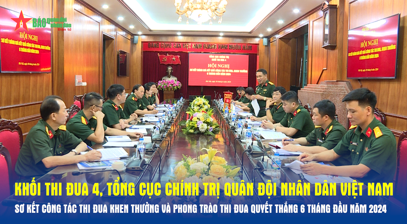 Sáng 10-6, tại Hà Nội, Khối thi đua 4 Tổng cục Chính trị Quân đội nhân dân Việt Nam , do Báo Quân đội nhân dân là đơn vị thường trực, tổ chức Hội nghị sơ kết công tác thi đua khen thưởng và Phong trào Thi đua Quyết thắng 6 tháng đầu năm 2024.