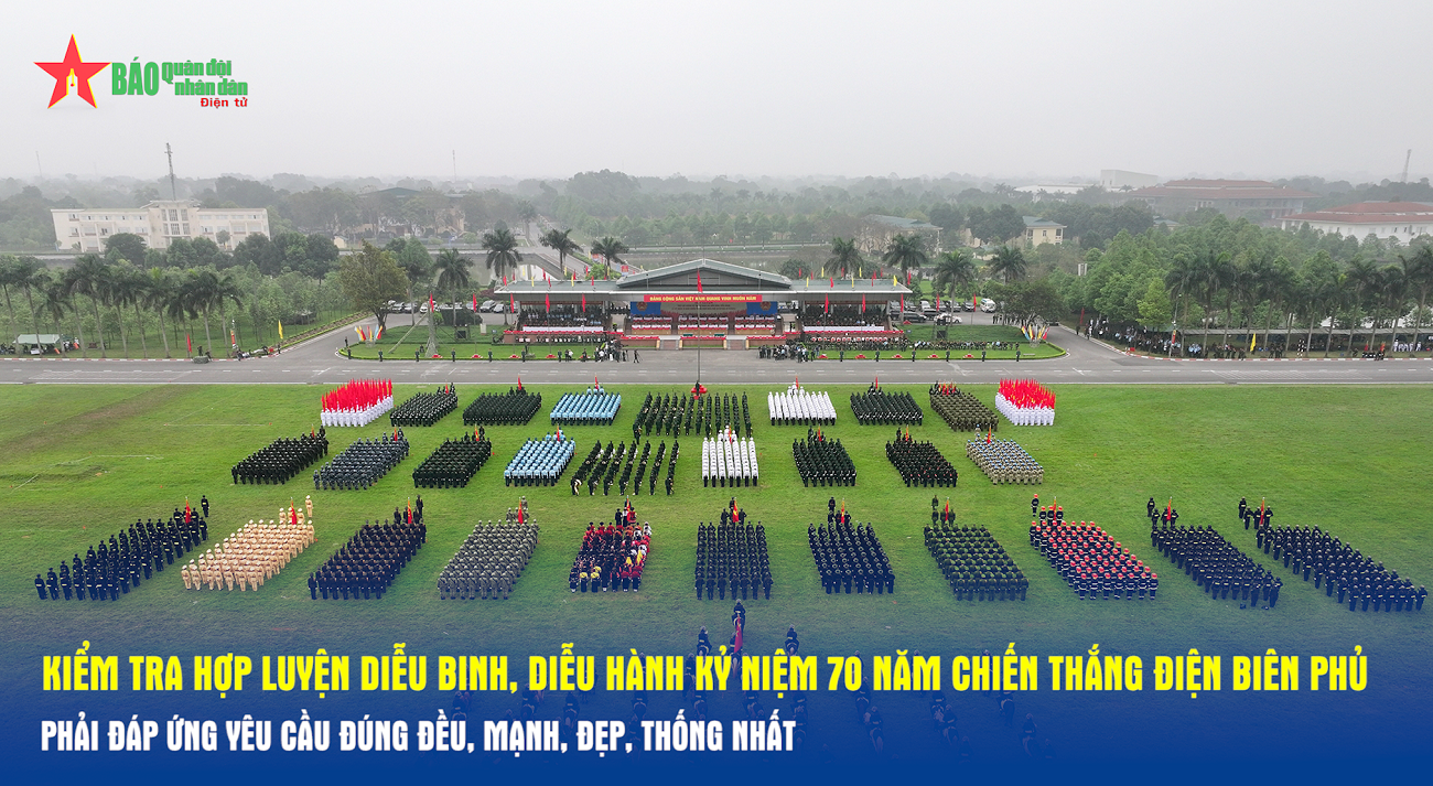 Sáng 4-4, tại Trung tâm Huấn luyện Quân sự Quốc gia 4, Bộ Quốc phòng, Bộ Công an kiểm tra công tác huấn luyện, hợp luyện lực lượng diễu binh, diễu hành kỷ niệm 70 năm Chiến thắng Điện Biên Phủ (7-5-1954 / 7-5-2024).