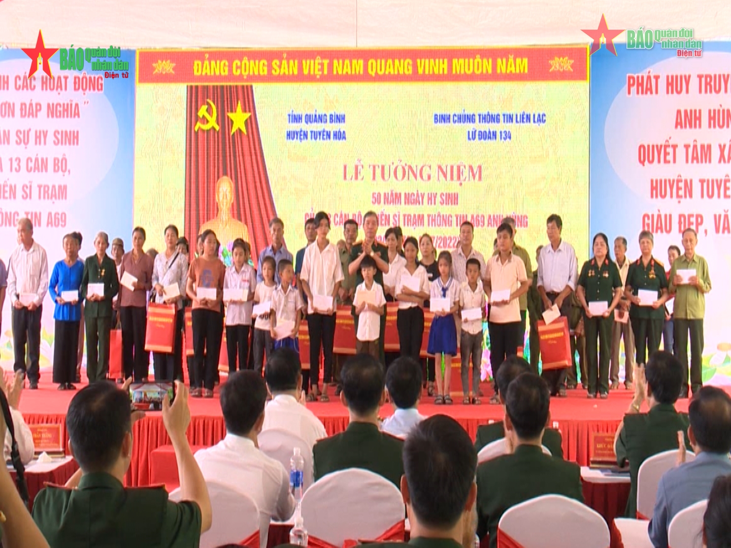 Ngày 2-7, huyện Tuyên Hóa, tỉnh Quảng Bình phối hợp với Lữ đoàn 134, Binh chủng Thông tin Liên lạc tổ chức Lễ tưởng niệm 50 năm Ngày hy sinh của 13 cán bộ, chiến sĩ Trạm Thông tin A69 tại Hang Lèn Hà (2-7-1972 / 2-7-2022).