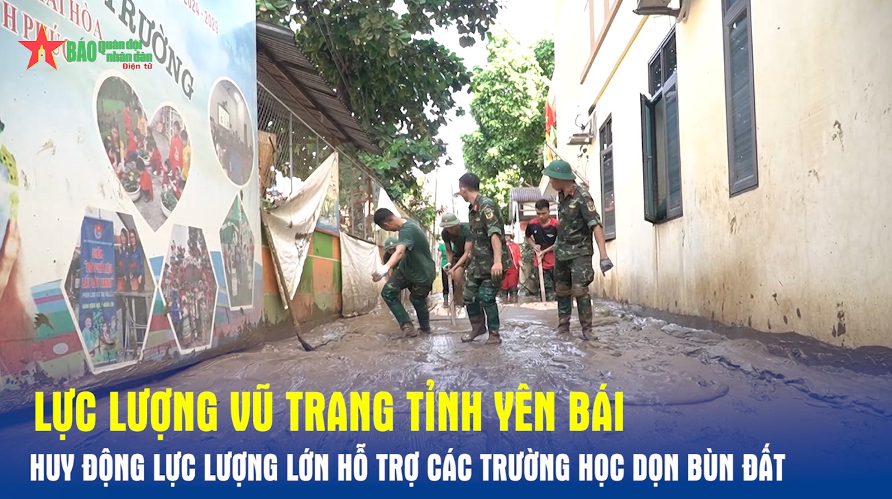 Lực lượng vũ trang tỉnh Yên Bái huy động lực lượng lớn hỗ trợ các trường học dọn bùn đất