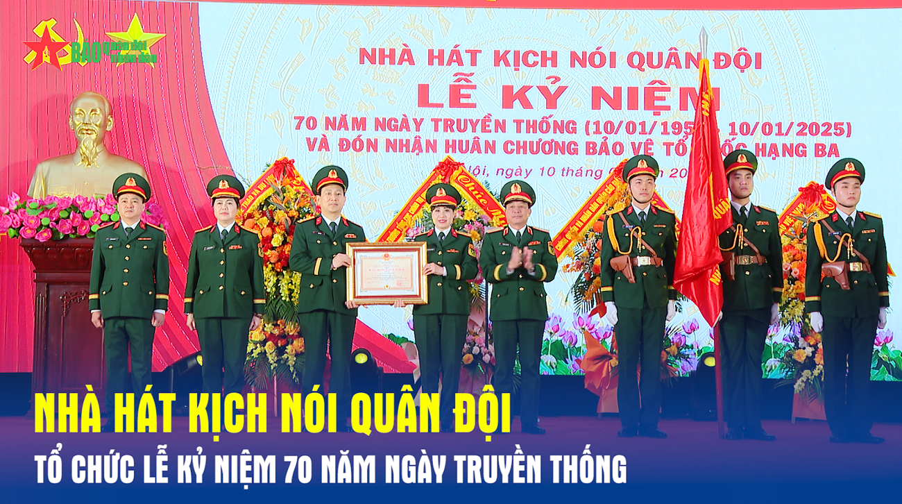 Sáng 10-1 tại Hà Nội, Nhà hát Kịch nói Quân đội tổ chức Lễ Kỷ niệm 70 năm Ngày truyền thống (10-1-1955 / 10-1-2025) và đón nhận Huân chương Bảo vệ Tổ quốc hạng Ba.