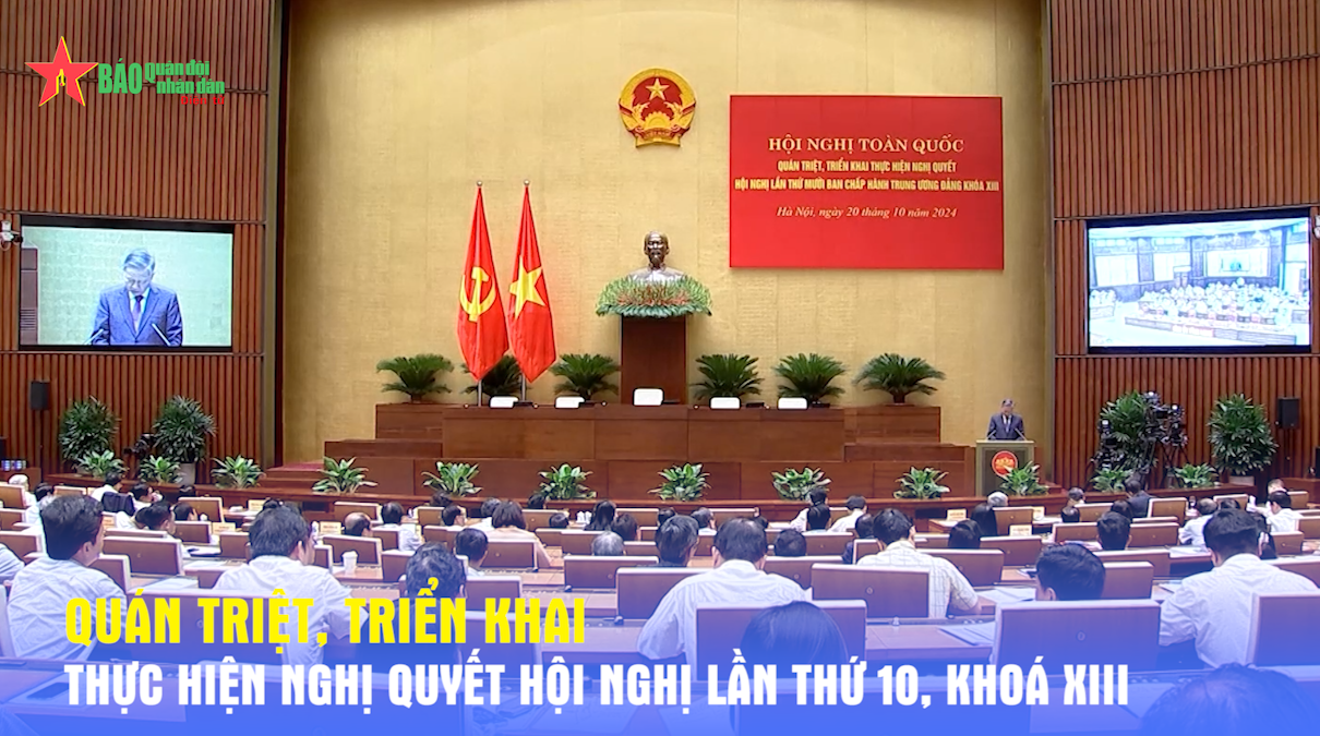 Sáng 20-10, Bộ Chính trị, Ban Bí thư Trung ương Đảng tổ chức Hội nghị toàn quốc quán triệt, triển khai Nghị quyết Hội nghị lần thứ 10, Ban Chấp hành Trung ương Đảng khóa XIII bằng hình thức trực tiếp kết hợp trực tuyến với điểm cầu Trung ương tại Hội trường Diên Hồng, Nhà Quốc hội, thành phố Hà Nội và điểm cầu các đảng ủy, tỉnh ủy, thành ủy trực thuộc Trung ương. Tổng Bí thư, Chủ tịch nước Tô Lâm tới dự, chỉ đạo Hội nghị tại điểm cầu Trung ương.