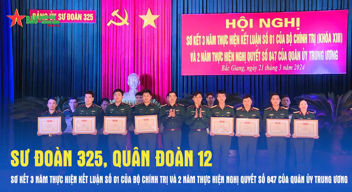 Ngày 21-3, Đảng ủy Sư đoàn 325, Quân đoàn 12 sơ kết 3 năm thực hiện Kết luận số 01-KL/TW của Bộ Chính trị khoá XIII về tiếp tục thực hiện Chỉ thị số 05-CT/TW của Bộ Chính trị khóa XII, 2 năm thực hiện Nghị quyết số 847-NQ/QUTW của Quân ủy Trung ương về phát huy phẩm chất Bộ đội Cụ Hồ, kiên quyết chống chủ nghĩa cá nhân trong tình hình mới. Thiếu tướng Nguyễn Đức Hưng, Bí thư Đảng ủy, Chính ủy Quân đoàn 12 dự và chỉ đạo.