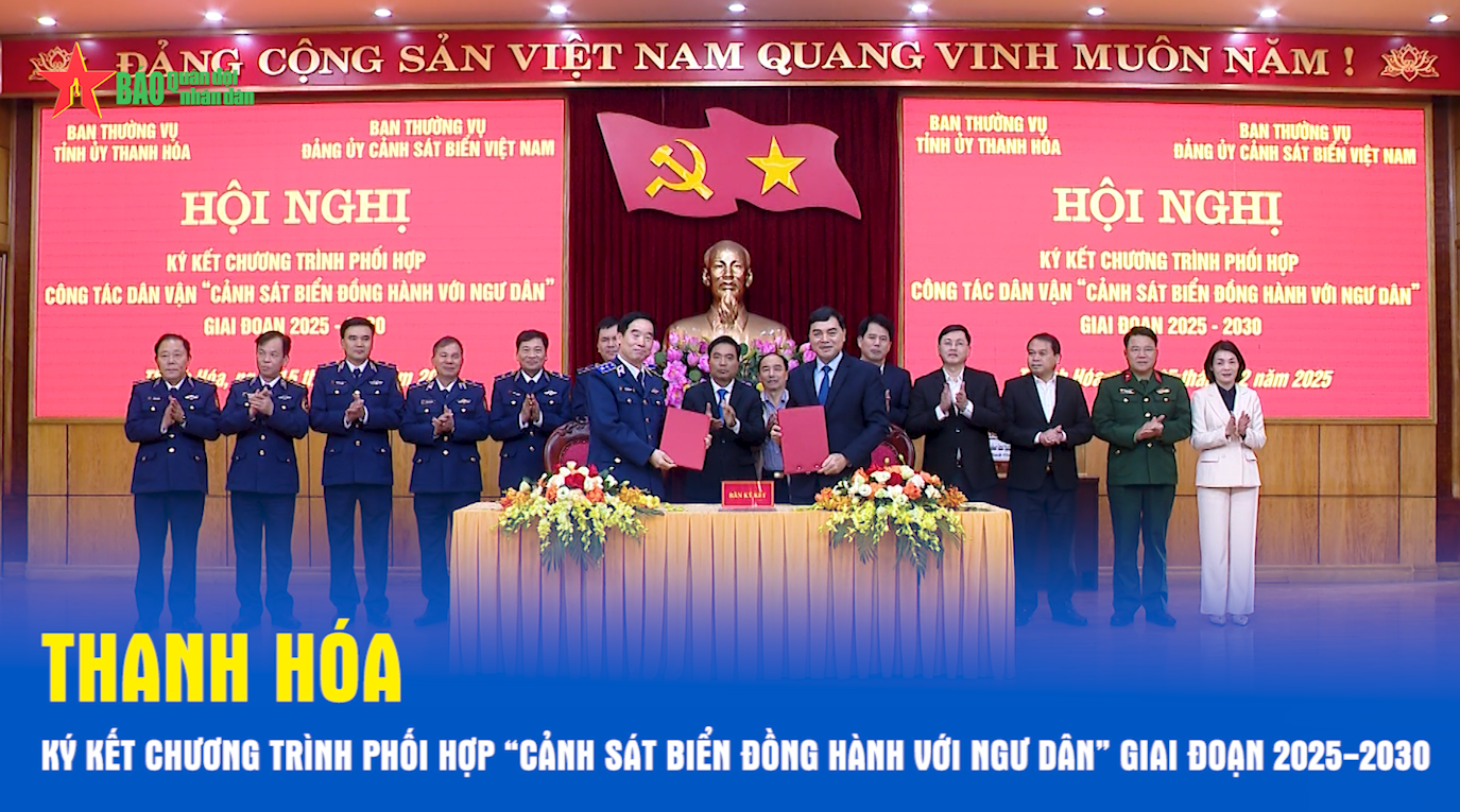 Ngày 15-12, tại Thanh Hóa, Ban Thường vụ Đảng ủy Cảnh sát biển (CSB) Việt Nam phối hợp với Ban Thường vụ Tỉnh ủy Thanh Hóa tổ chức Hội nghị triển khai Chương trình phối hợp công tác dân vận “Cảnh sát biển đồng hành với ngư dân” giai đoạn 2025-2030.