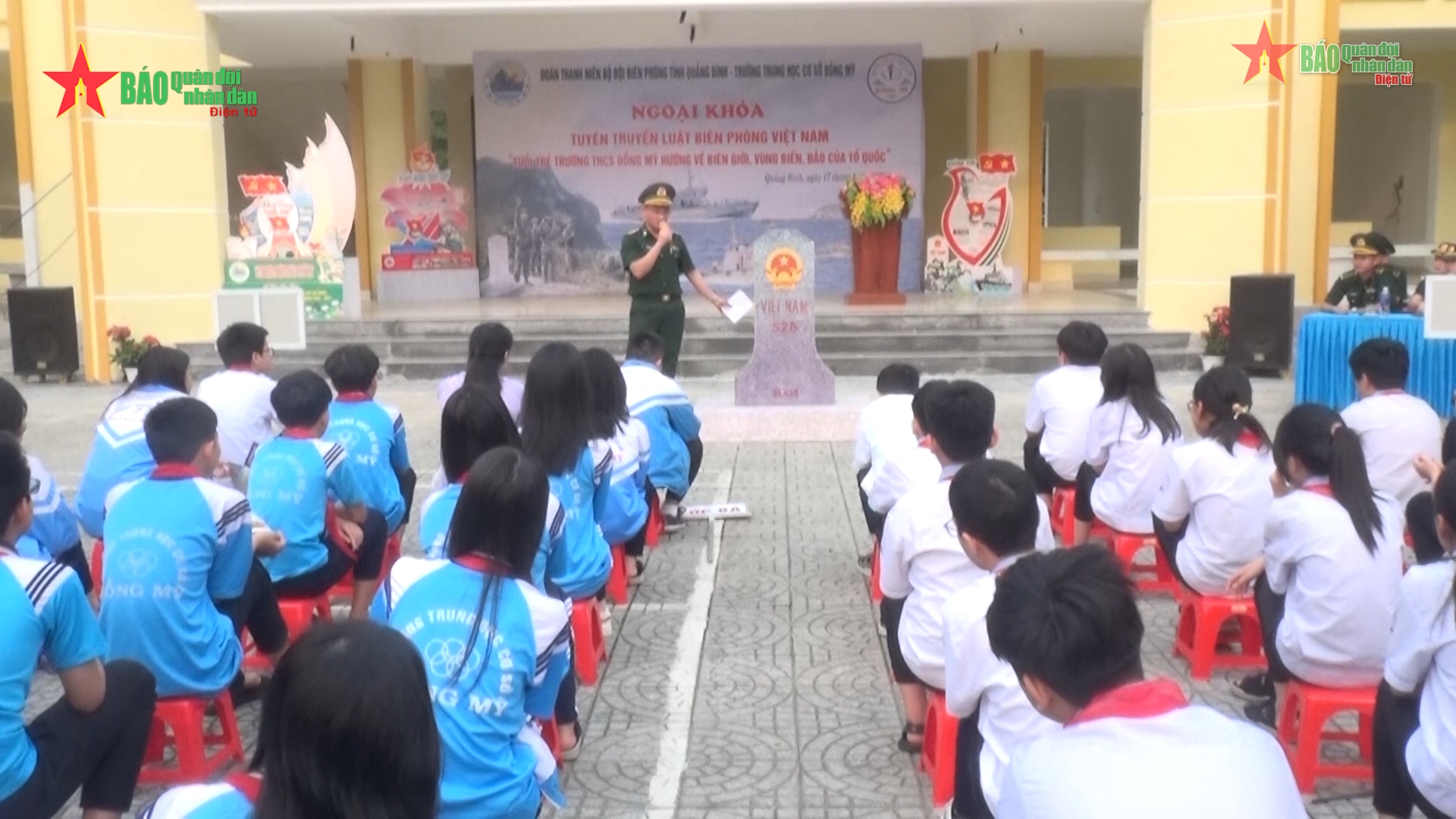 Chương trình ngoại khóa "Tiết học biên cương" được tổ chức tại Trường THCS Đồng Mỹ, thành phố Đồng Hới, tỉnh Quảng Bình là dịp để thầy cô giáo và các em học sinh dễ hình dung, tiếp cận với các chuyên đề được giới thiệu về Luật Biên phòng Việt Nam