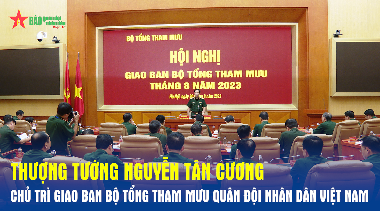 Chiều 30-8, tại Hà Nội, Thượng tướng Nguyễn Tân Cương, Ủy viên Trung ương Đảng, Ủy viên Thường vụ Quân ủy Trung ương, Tổng Tham mưu trưởng QĐND Việt Nam, Thứ trưởng Bộ Quốc phòng chủ trì Hội nghị giao ban Bộ Tổng Tham mưu Quân đội nhân dân Việt Nam tháng 8-2023.