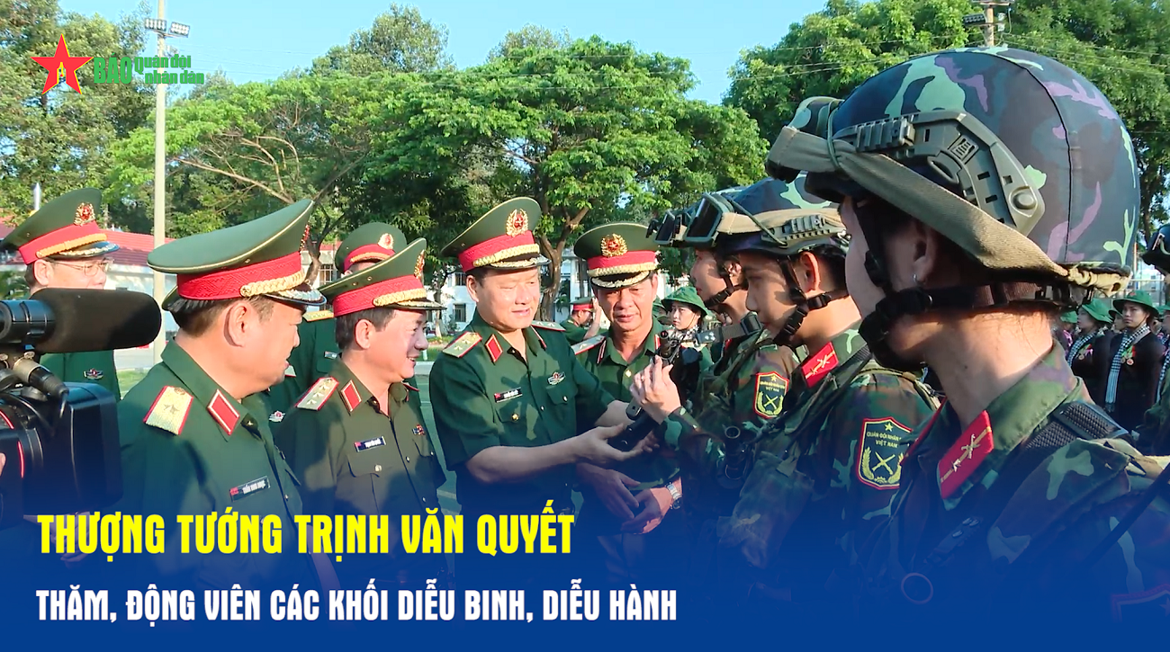 Sáng 21-4, Thượng tướng Trịnh Văn Quyết, Bí thư Trung ương Đảng, Ủy viên Thường vụ Quân ủy Trung ương, Chủ nhiệm Tổng cục Chính trị Quân đội nhân dân Việt Nam thăm, tặng quà, động viên cán bộ, chiến sĩ các khối diễu binh, diễu hành kỷ niệm 50 năm Ngày thống nhất đất nước đang luyện tập tại Trường Quân sự Quân khu 7.