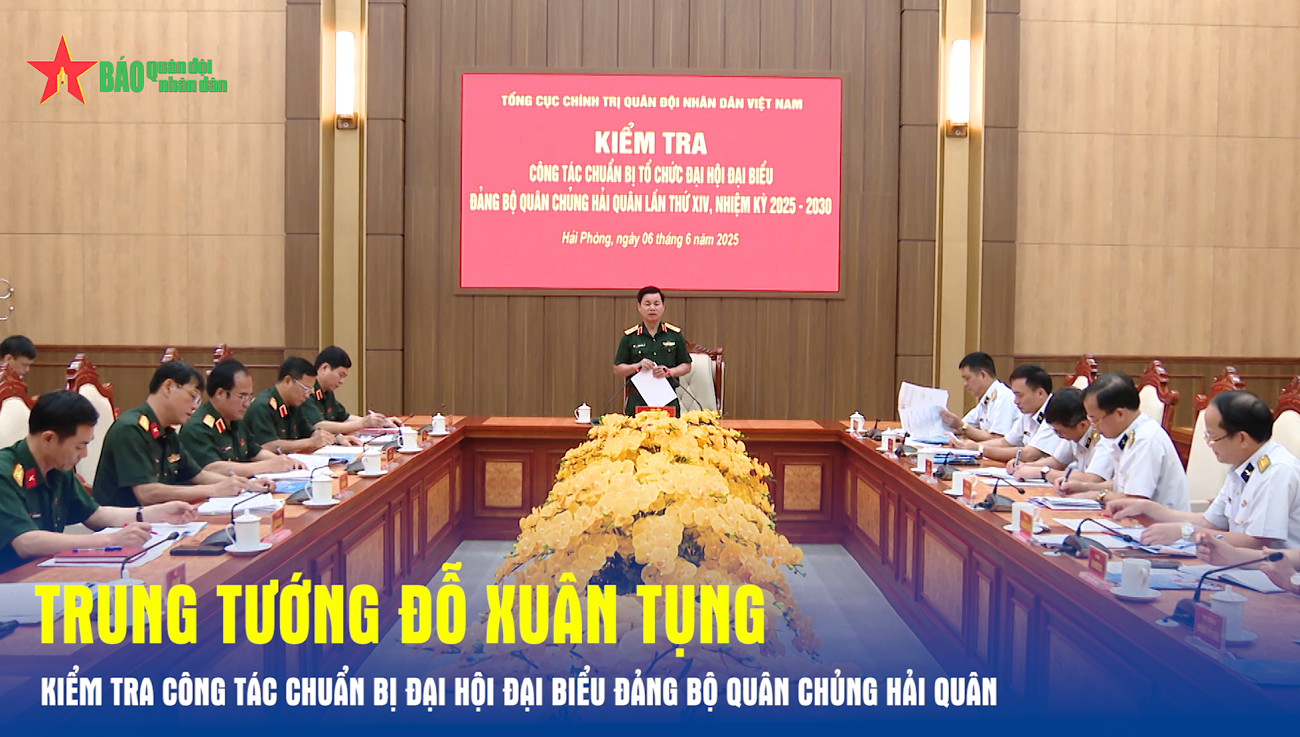 Sáng 6-6, Trung tướng Đỗ Xuân Tụng, Phó chủ nhiệm Tổng cục Chính trị Quân đội nhân dân Việt Nam làm trưởng đoàn kiểm tra của Tổng cục Chính trị kiểm tra, nắm tình hình chuẩn bị đại hội của Đảng ủy Quân chủng Hải quân, nhiệm kỳ 2025- 2030.