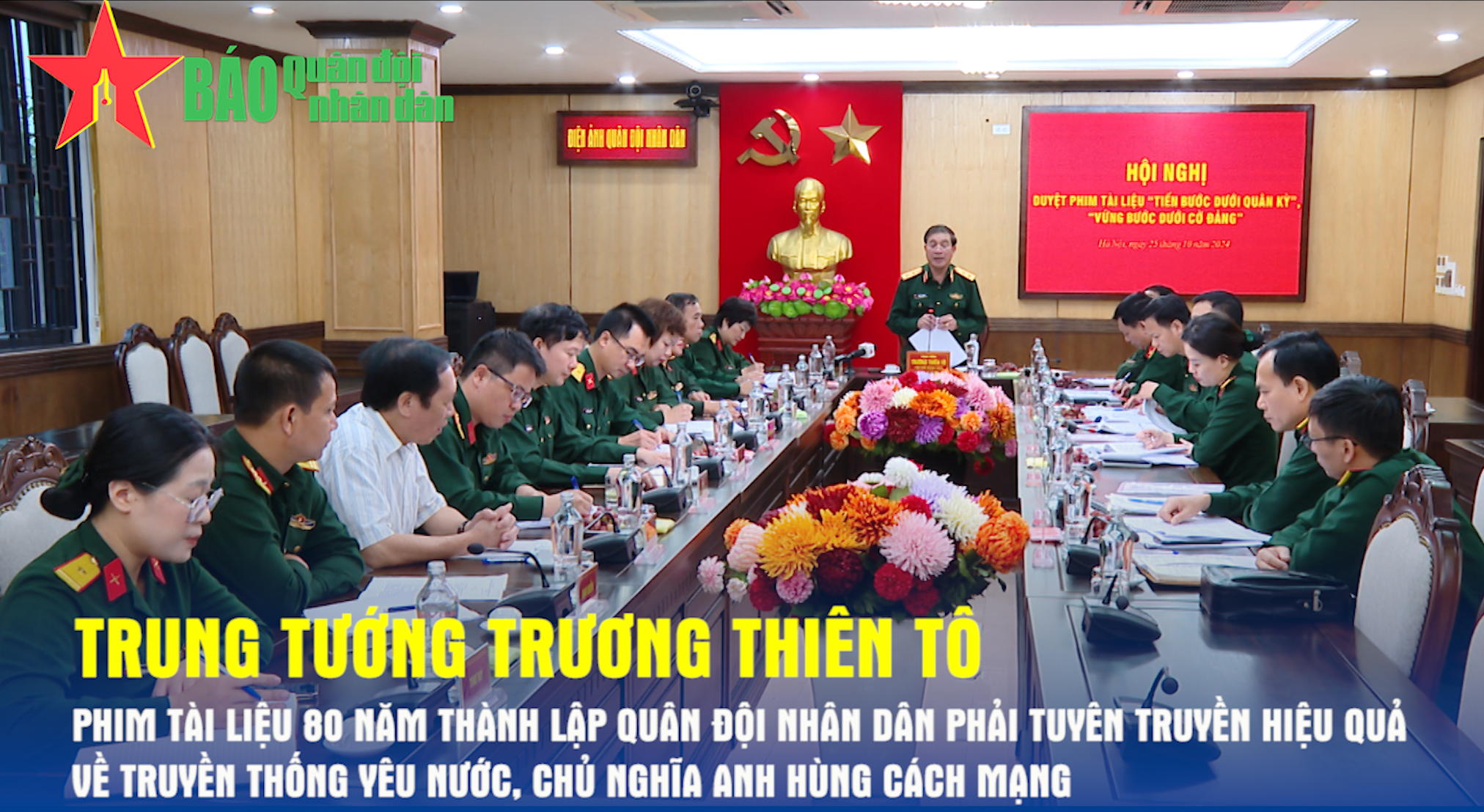 Chiều 25-10, Trung tướng Trương Thiên Tô, Phó chủ nhiệm Tổng cục Chính trị Quân đội nhân dân (QĐND) Việt Nam chủ trì hội nghị duyệt hai phim tài liệu “Tiến bước dưới Quân kỳ” và “Vững bước dưới cờ Đảng” do Điện ảnh QĐND sản xuất.