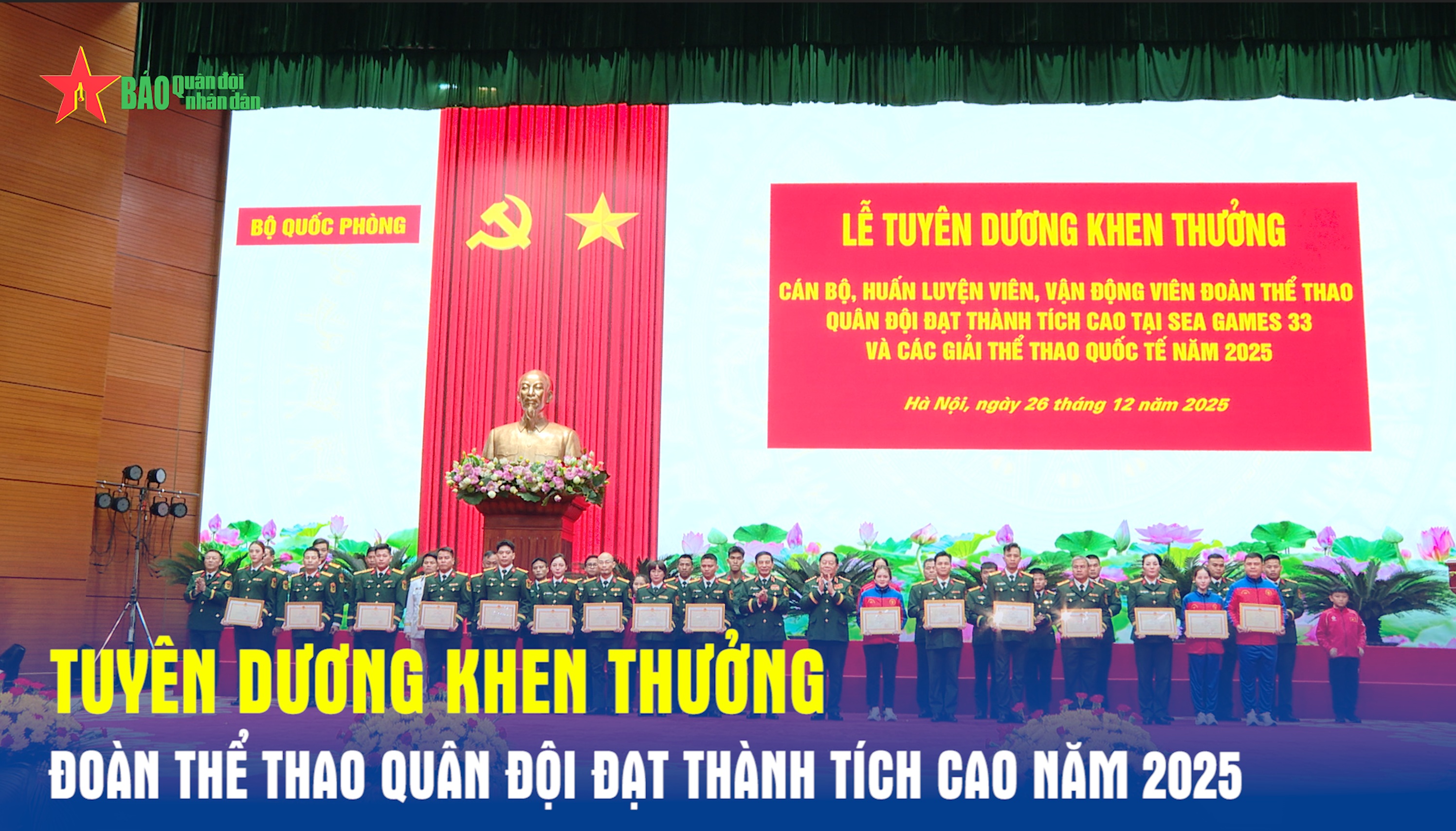 Ngày 26-12, Bộ Quốc phòng tổ chức Lễ tuyên dương khen thưởng cán bộ, huấn luyện viên, vận động viên đoàn thể thao quân đội đạt thành tích cao tại Seagames 33 và các giải thể thao quốc tế năm 2025.