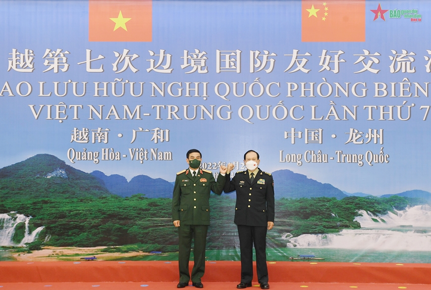 Trong khuôn khổ Giao lưu hữu nghị quốc phòng biên giới Việt Nam-Trung Quốc lần thứ 7, sáng 23-4, Đoàn đại biểu Bộ Quốc phòng hai nước đã tiến hành hội đàm tại Trung tâm Hội nghị huyện Long Châu (tỉnh Quảng Tây, Trung Quốc).