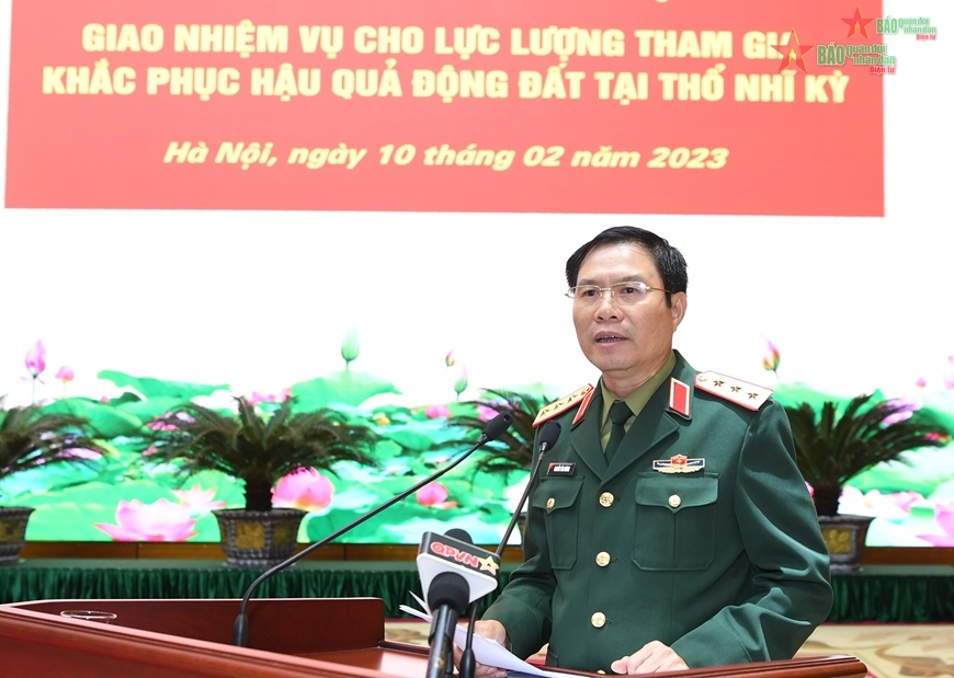 Chiều 10-2, tại Hà Nội, Bộ Quốc phòng tổ chức hội nghị giao nhiệm vụ cho lực lượng Quân đội nhân dân (QĐND) Việt Nam tham gia khắc phục hậu quả động đất tại Thổ Nhĩ Kỳ. Thượng tướng Nguyễn Tân Cương, Ủy viên Trung ương Đảng, Ủy viên Thường vụ Quân ủy Trung ương, Tổng Tham mưu trưởng QĐND Việt Nam, Thứ trưởng Bộ Quốc phòng chủ trì hội nghị.