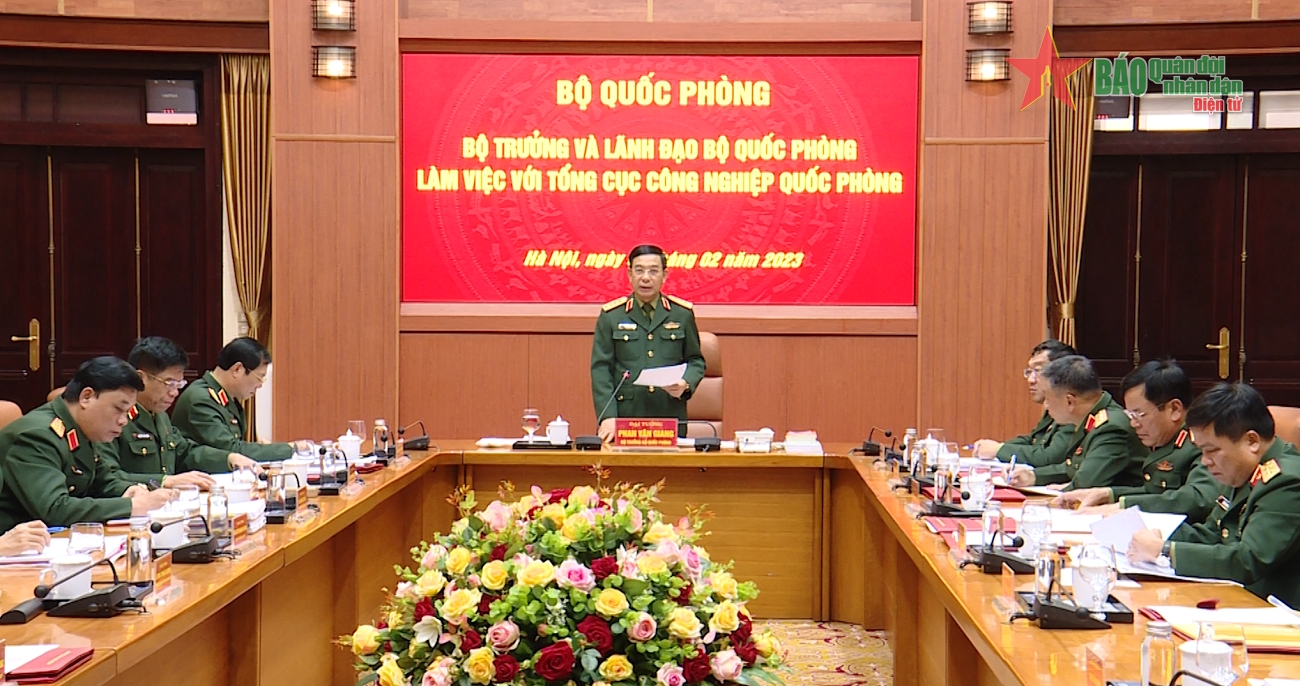 Chiều 3/2, tại Hà Nội, Đại tướng Phan Văn Giang, Ủy viên Bộ Chính trị, Phó bí thư Quân ủy Trung ương, Bộ trưởng Bộ Quốc phòng đã làm việc với Tổng cục Công nghiệp Quốc phòng (CNQP) về tình hình thực hiện một số nhiệm vụ trọng tâm của tổng cục trong năm 2023