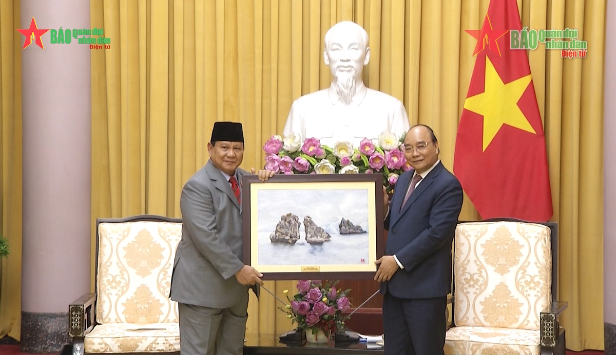 Trong khuôn khổ chuyến thăm chính thức Việt Nam của đoàn đại biểu Quân sự cấp cao Indonesia, chiều 13-5, tại Phủ Chủ tịch, Chủ tịch nước Nguyễn Xuân Phúc đã tiếp Bộ trưởng Quốc phòng Indonesia Prabowo Subianto (Pra-bô-ô Su-bi-an-tô) và các thành viên Đoàn.