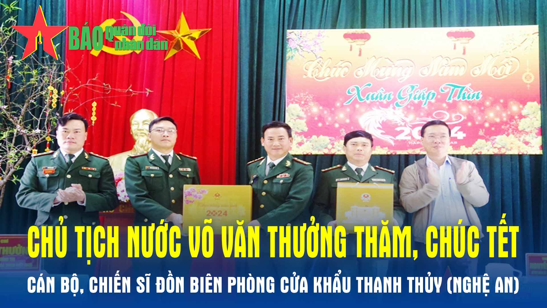 Ngày 17-1, Chủ tịch nước Võ Văn Thưởng cùng đoàn công tác đã đến thăm, tặng quà và chúc Tết cán bộ, chiến sĩ Đồn Biên phòng Cửa khẩu Thanh Thủy (huyện Thanh Chương, tỉnh Nghệ An).
