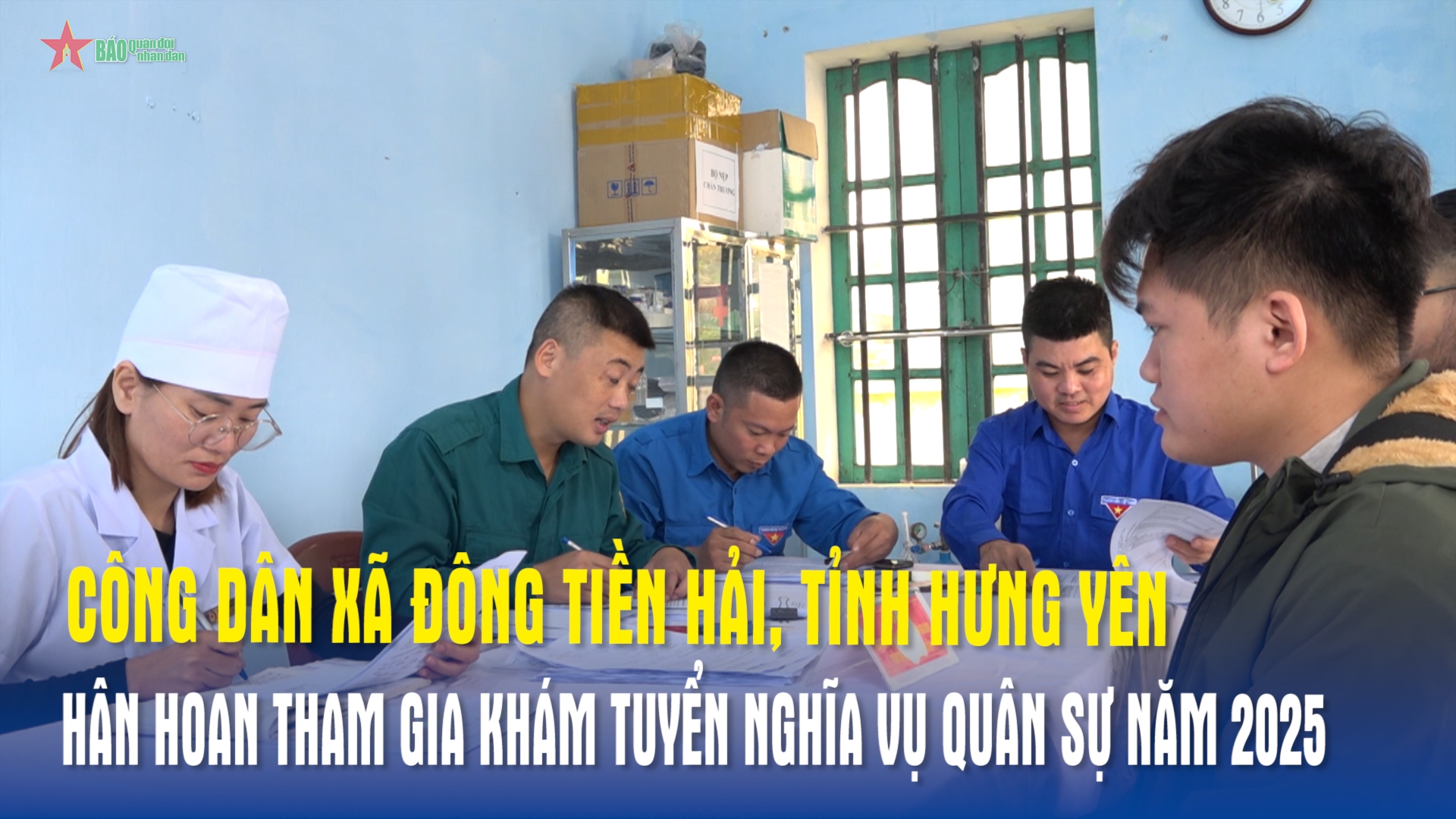 Sáng 25-10, tại Trạm Y tế xã Đông Tiền Hải, tỉnh Hưng Yên, không khí rộn ràng, phấn khởi bao trùm khắp khuôn viên khi hàng trăm thanh niên trong độ tuổi nhập ngũ tập trung tham gia khám tuyển nghĩa vụ quân sự năm 2025. Cờ đỏ, băng rôn, khẩu hiệu được treo trang trọng, thể hiện tinh thần yêu nước, sẵn sàng lên đường bảo vệ Tổ quốc của lớp thanh niên hôm nay.