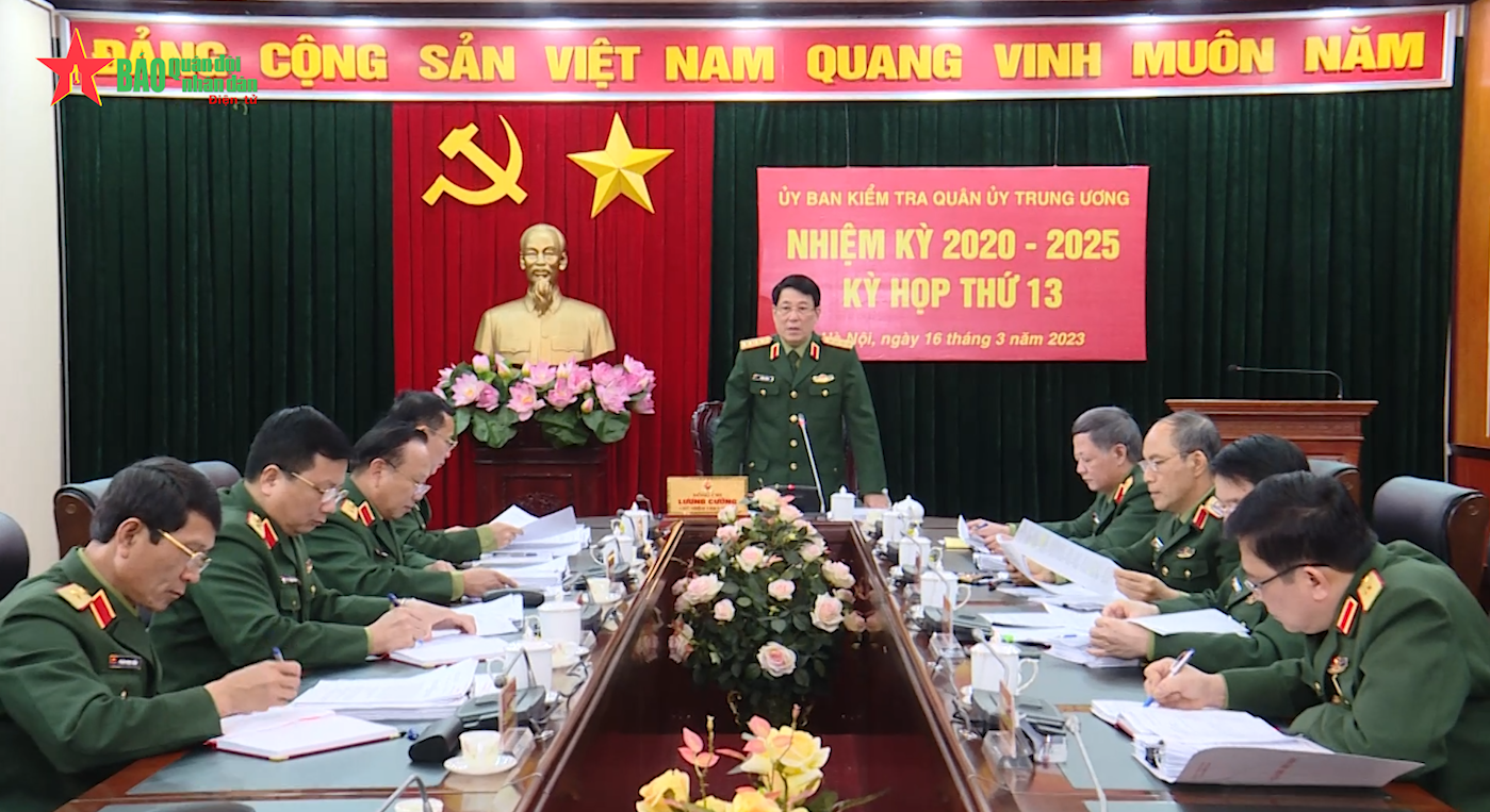 Chiều 16-3, Ủy ban Kiểm tra Quân ủy Trung ương nhiệm kỳ 2020-2025 tổ chức Kỳ họp thứ 13. Đại tướng Lương Cường, Ủy viên Bộ Chính trị, Ủy viên Thường vụ Quân ủy Trung ương, Chủ nhiệm Tổng cục Chính trị Quân đội nhân dân Việt Nam, Chủ nhiệm Ủy ban Kiểm tra Quân ủy Trung ương chủ trì kỳ họp.