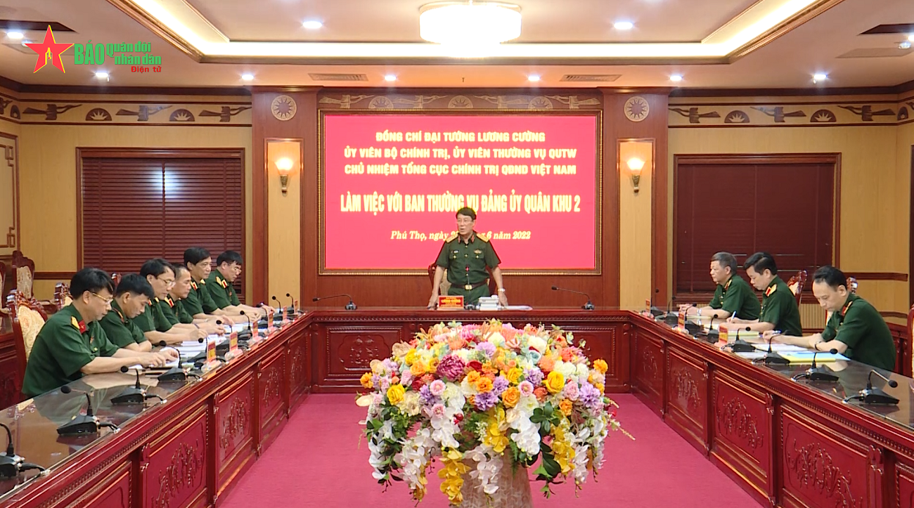 Sáng 22-6, Đại tướng Lương Cường, Ủy viên Bộ Chính trị, Ủy viên Thường vụ Quân ủy Trung ương, Chủ nhiệm Tổng cục Chính trị làm việc với Ban thường vụ Đảng ủy Quân khu 2.