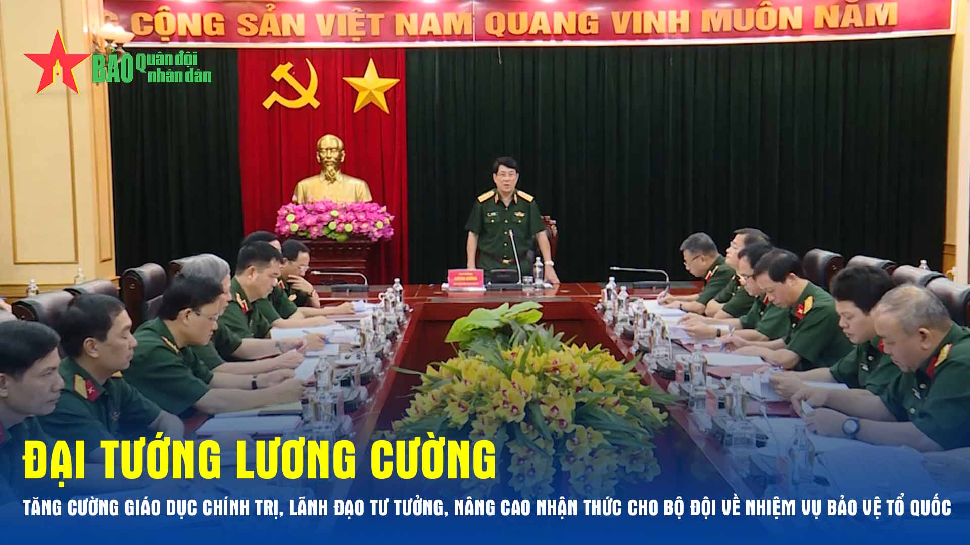 Ngày 28-6, Đại tướng Lương Cường, Ủy viên Bộ Chính trị, Ủy viên Thường vụ Quân ủy Trung ương, Chủ nhiệm Tổng cục Chính trị Quân đội nhân dân Việt Nam chủ trì Hội nghị Ban Chủ nhiệm Tổng cục Chính trị nghe báo cáo về việc tổ chức lại 3 nhà hát, 2 công ty in thuộc Tổng cục Chính trị; đánh giá kết quả thực hiện nhiệm vụ tháng 6 và triển khai nhiệm vụ tháng 7-2023.