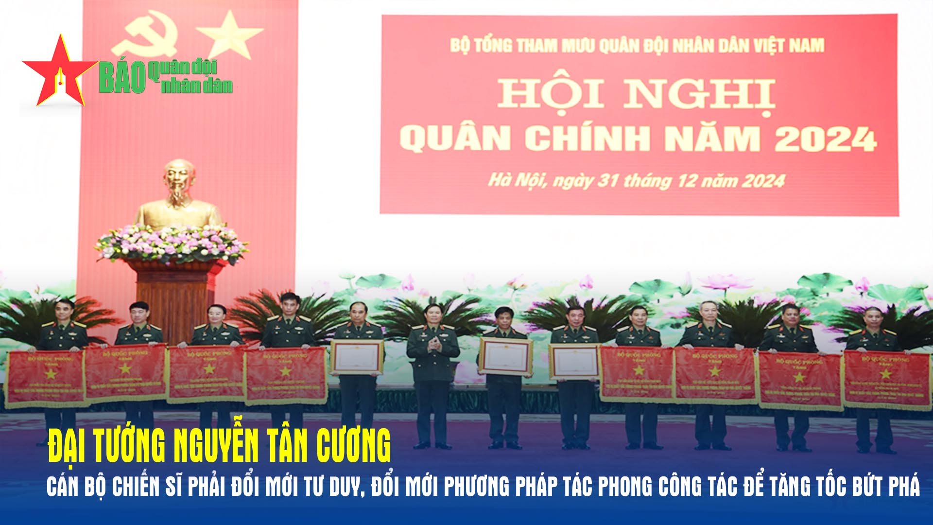 Sáng 31-12, Đại tướng Nguyễn Tân Cương, Ủy viên Trung ương Đảng, Ủy viên Thường vụ Quân ủy Trung ương, Tổng Tham mưu trưởng Quân đội nhân dân Việt Nam, Thứ trưởng Bộ Quốc phòng chủ trì Hội nghị Quân chính Bộ Tổng Tham mưu năm 2024.