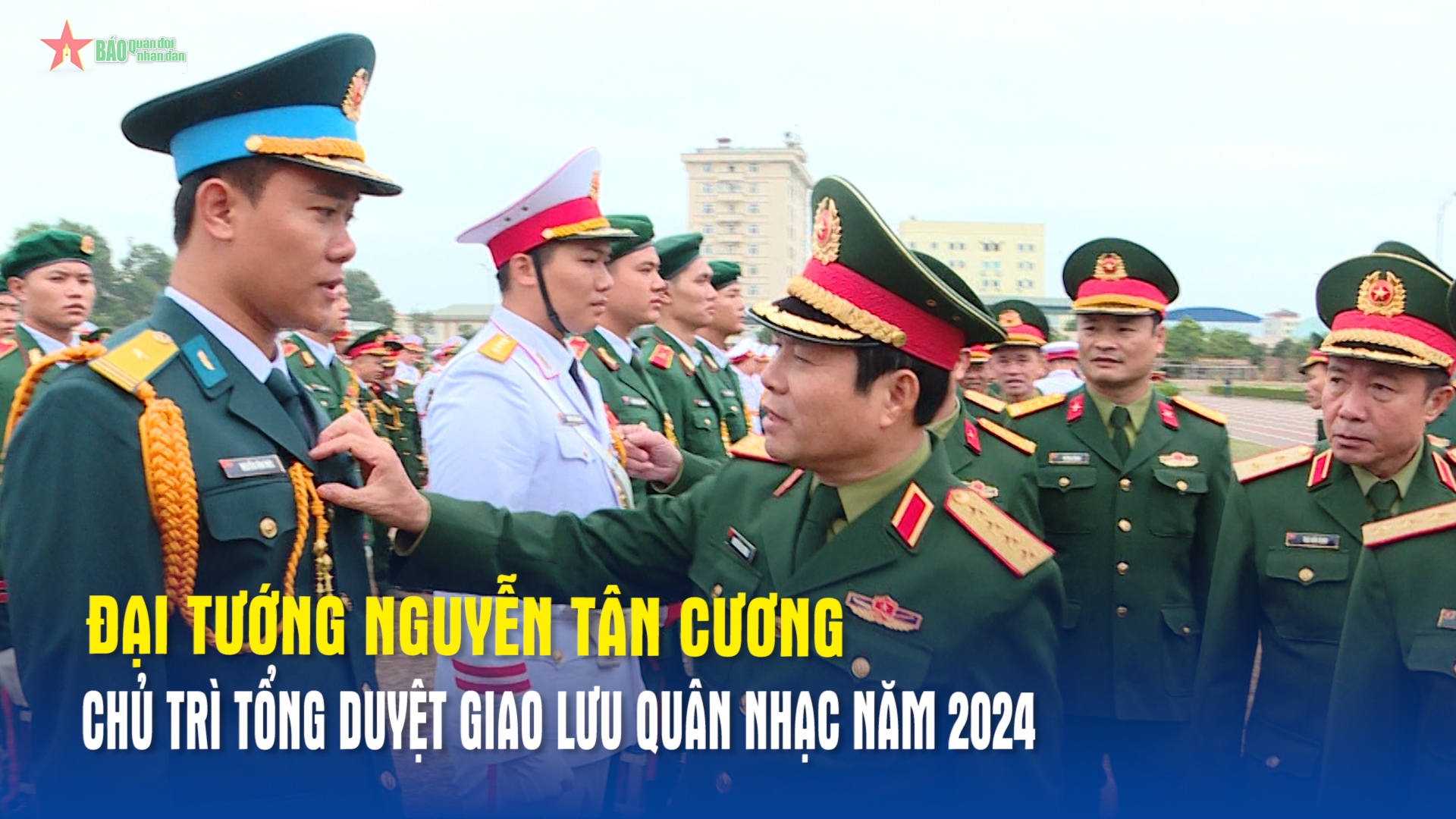 Sáng 13-12, tại Hà Nội, Đại tướng Nguyễn Tân Cương, Ủy viên Trung ương Đảng, Ủy viên Thường vụ Quân ủy Trung ương, Tổng Tham mưu trưởng Quân đội nhân dân Việt Nam, Thứ trưởng Bộ Quốc phòng chủ trì tổng duyệt các đội quân nhạc Việt Nam tham gia biểu diễn tại Giao lưu quân nhạc năm 2024.