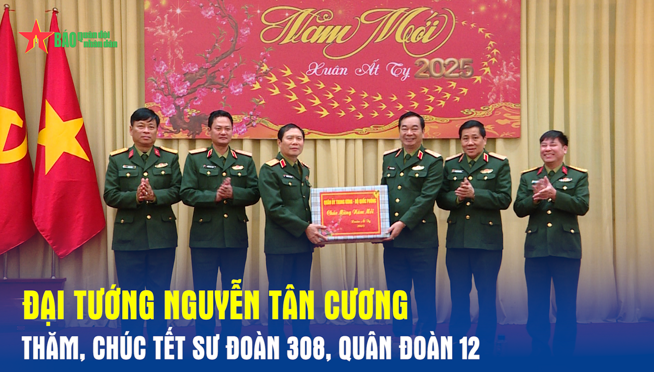 Chiều 22-1, đoàn công tác Quân ủy Trung ương, Bộ Quốc phòng do Đại tướng Nguyễn Tân Cương, Ủy viên Trung ương Đảng, Ủy viên Thường vụ Quân ủy Trung ương, Tổng Tham mưu trưởng Quân đội nhân dân Việt Nam, Thứ trưởng Bộ Quốc phòng làm Trưởng đoàn đã đến thăm, chúc Tết cán bộ, chiến sĩ Sư đoàn 308, Quân đoàn 12.