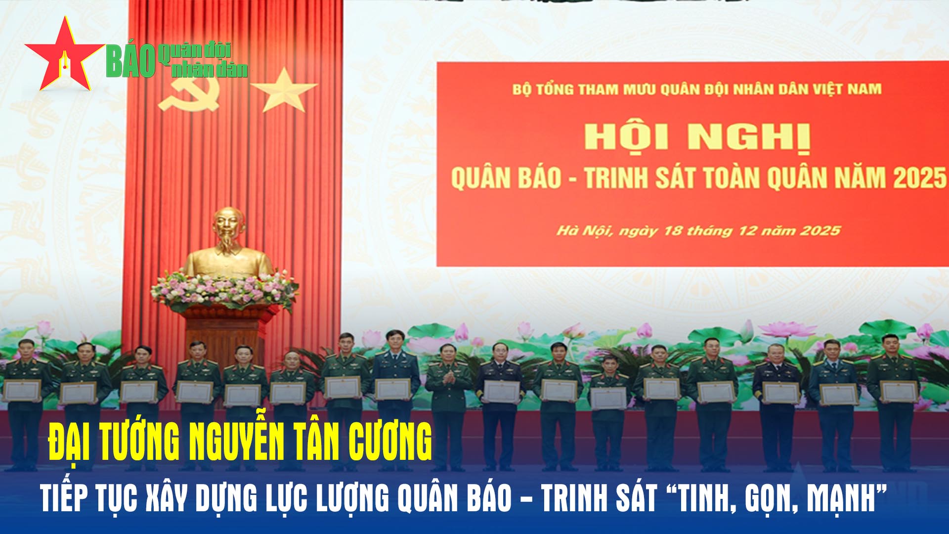 Chiều 18-12, Bộ Tổng Tham mưu tổ chức Hội nghị Quân báo - Trinh sát toàn quân năm 2025. Đại tướng Nguyễn Tân Cương, Ủy viên Trung ương Đảng, Ủy viên Thường vụ Quân ủy Trung ương, Tổng Tham mưu trưởng, Thứ trưởng Bộ Quốc phòng chủ trì hội nghị.