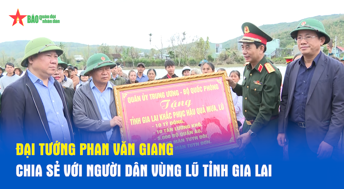 Ngày 22-11, Đại tướng Phan Văn Giang, Ủy viên Bộ Chính trị, Phó bí thư Quân ủy Trung ương, Bộ trưởng Bộ Quốc phòng dẫn đầu đoàn công tác của Trung ương đến thăm, trao quà tặng người dân vùng lũ tỉnh Gia Lai.