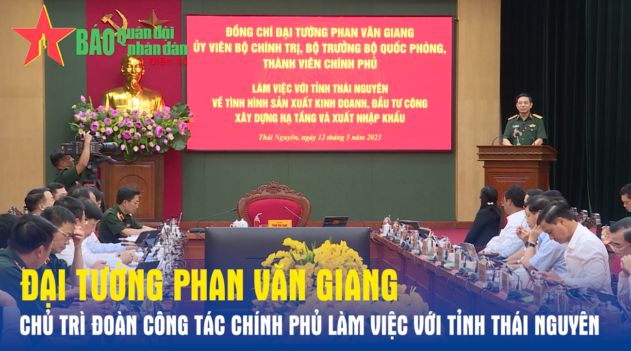 Thực hiện chỉ đạo của Thủ tướng Chính phủ, sáng 12-5, tại Thái Nguyên, Đại tướng Phan Văn Giang đã làm việc với tỉnh Thái Nguyên về tình hình sản xuất kinh doanh, đầu tư công, xây dựng hạ tầng và xuất nhập khẩu.