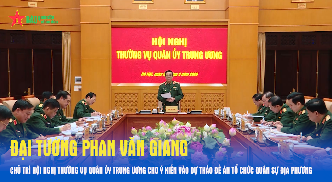 Sáng 22-3, tại Hà Nội, Thường vụ Quân ủy Trung ương tổ chức hội nghị để xem xét, cho ý kiến vào dự thảo Đề án về tổ chức quân sự địa phương “tinh, gọn, mạnh” đáp ứng yêu cầu nhiệm vụ trong tình hình mới. Đại tướng Phan Văn Giang, Ủy viên Bộ Chính trị, Phó bí thư Quân ủy Trung ương, Bộ trưởng Bộ Quốc phòng chủ trì hội nghị.