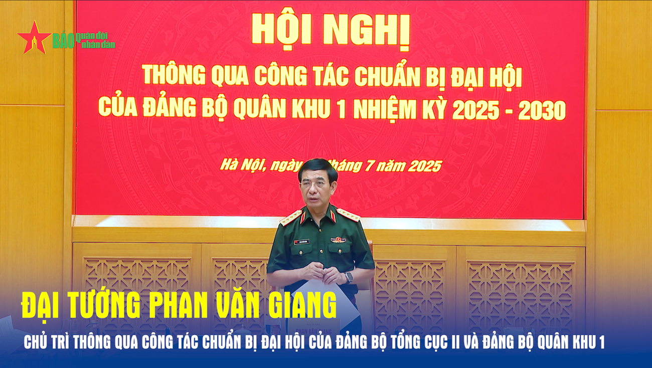 Ngày 14-7, tại Hà Nội, Đại tướng Phan Văn Giang, Ủy viên Bộ Chính trị, Phó bí thư Quân ủy Trung ương, Bộ trưởng Bộ Quốc phòng chủ trì Hội nghị thông qua công tác chuẩn bị Đại hội của Đảng bộ Tổng cục II và Đảng bộ Quân khu 1.