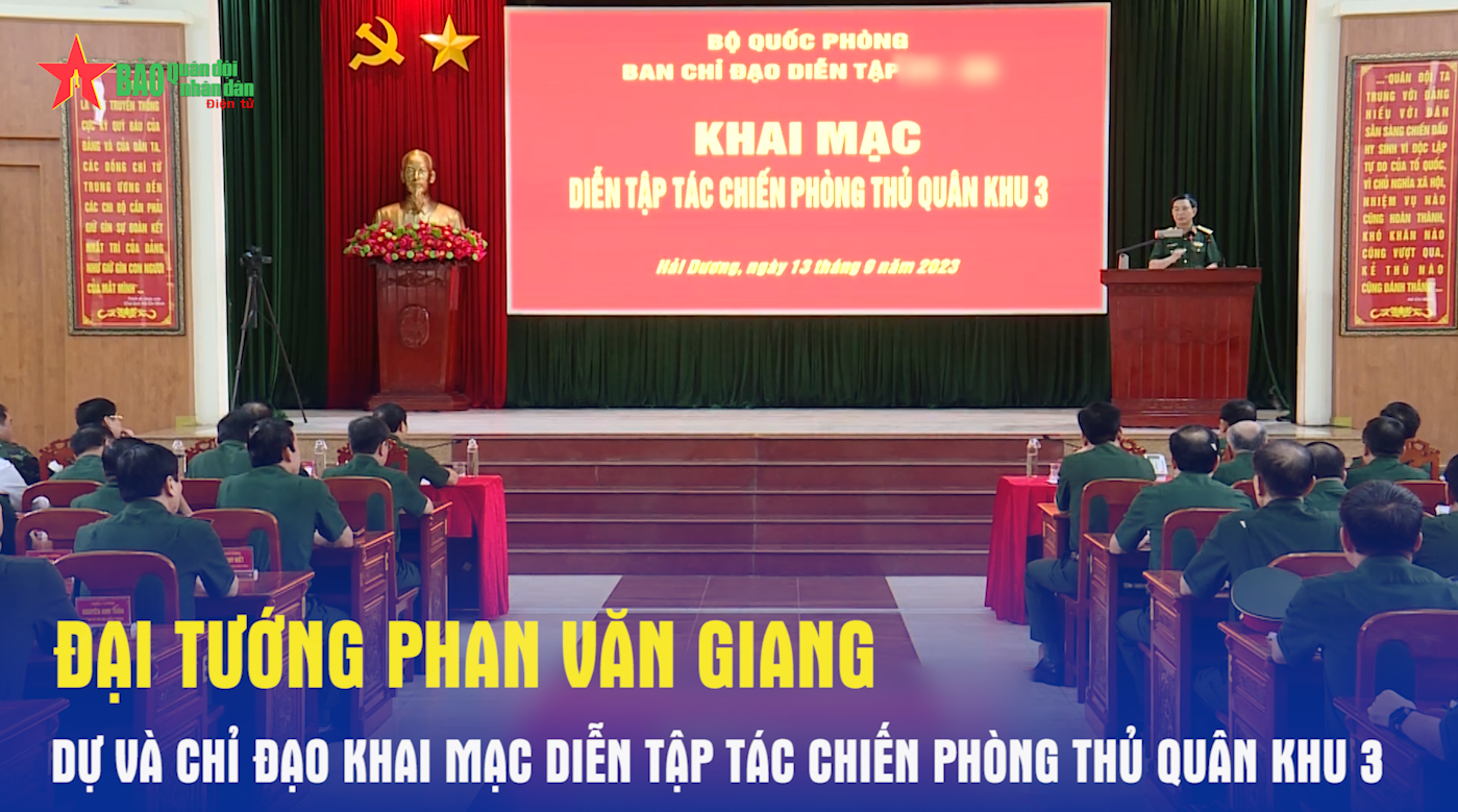 Sáng 13-9, Bộ Quốc phòng tổ chức khai mạc diễn tập tác chiến phòng thủ Quân khu 3. Đại tướng Phan Văn Giang, Ủy viên Bộ Chính trị, Phó bí thư Quân ủy Trung ương, Bộ trưởng Bộ Quốc phòng dự và chỉ đạo diễn tập.