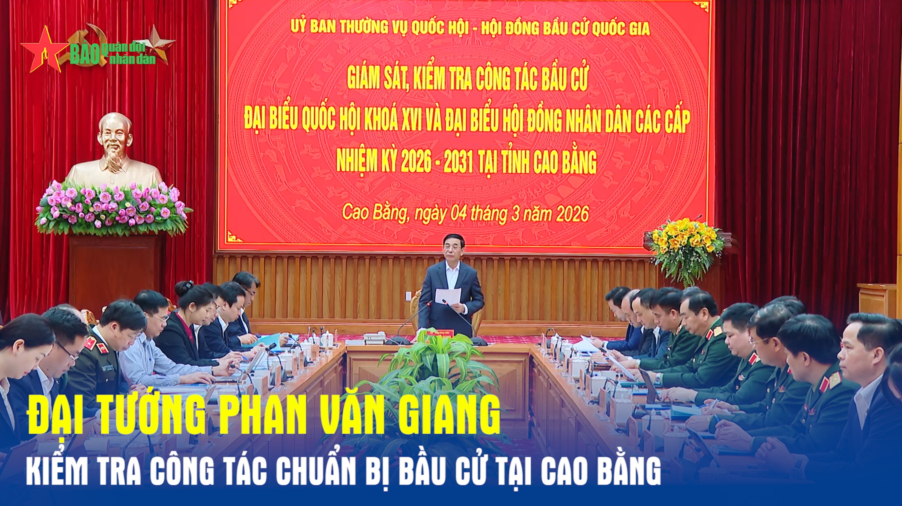 Sáng 4-3, Đoàn giám sát, kiểm tra của Ủy ban Thường vụ Quốc hội và Hội đồng Bầu cử quốc gia về công tác bầu cử đại biểu Quốc hội khóa XVI và đại biểu HĐND các cấp nhiệm kỳ 2026-2031 do Đại tướng Phan Văn Giang, Ủy viên Bộ Chính trị, Phó bí thư Quân ủy Trung ương, Bộ trưởng Bộ Quốc phòng, Ủy viên Hội đồng Bầu cử quốc gia làm trưởng đoàn đã tiến hành giám sát, kiểm tra tại Cao Bằng.