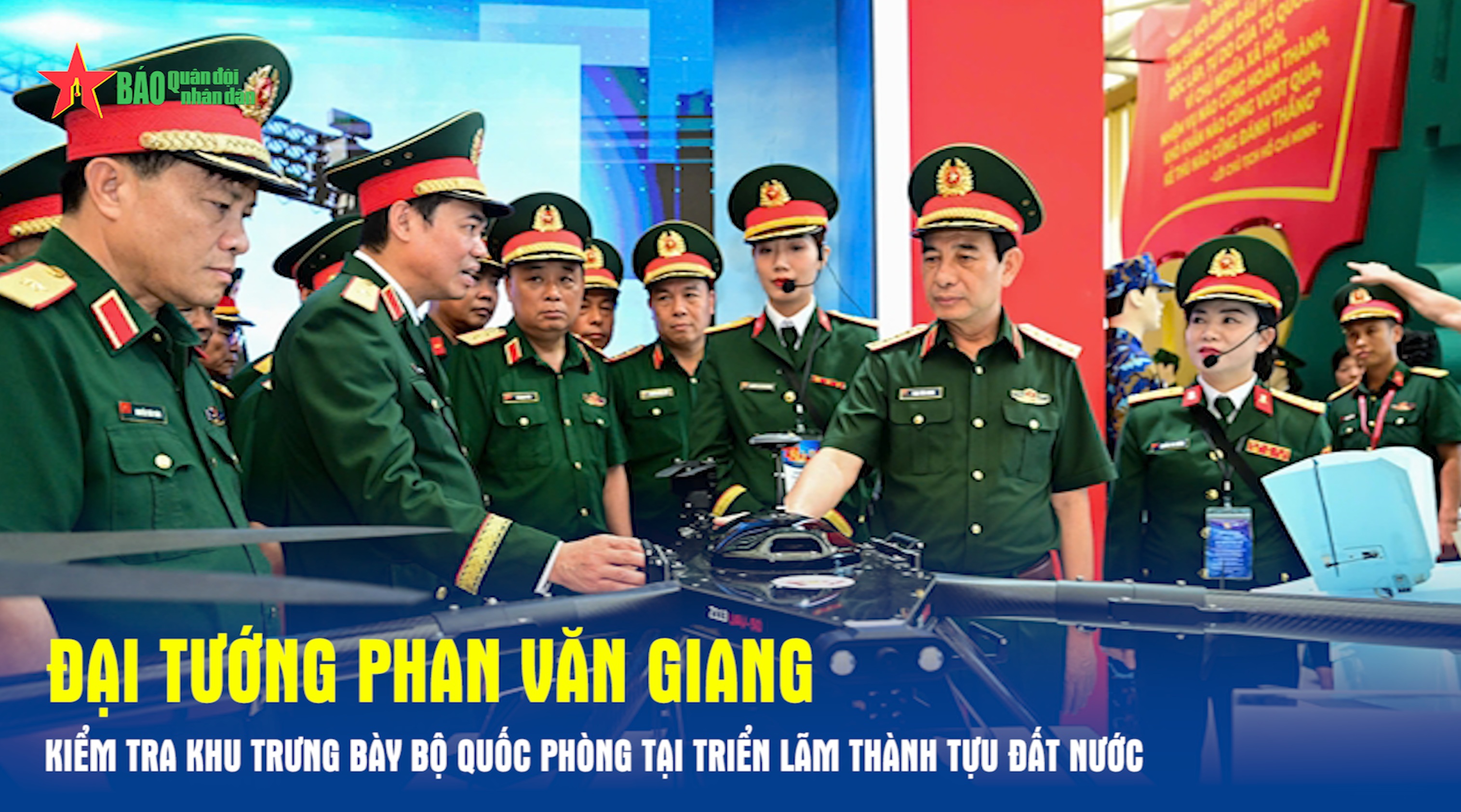 Chiều 12-9, đoàn công tác Bộ Quốc phòng do Đại tướng Phan Văn Giang, Ủy viên Bộ Chính trị, Phó bí thư Quân ủy Trung ương, Bộ trưởng Bộ Quốc phòng dẫn đầu đã kiểm tra khu trưng bày của Bộ Quốc phòng tại Triển lãm Thành tựu đất nước “80 năm hành trình Độc lập - Tự do - Hạnh phúc”.