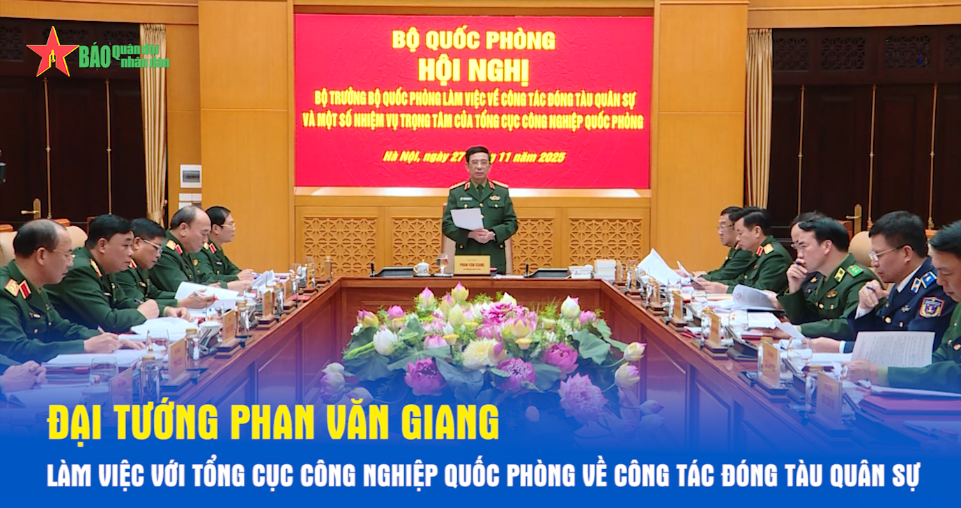 Ngày 27-11, Đại tướng Phan Văn Giang, Ủy viên Bộ Chính trị, Phó Bí thư Quân ủy Trung ương, Bộ trưởng Bộ Quốc phòng đã chủ trì buổi làm việc về công tác đóng tàu quân sự và một số nhiệm vụ trọng tâm của Tổng cục Công nghiệp Quốc phòng