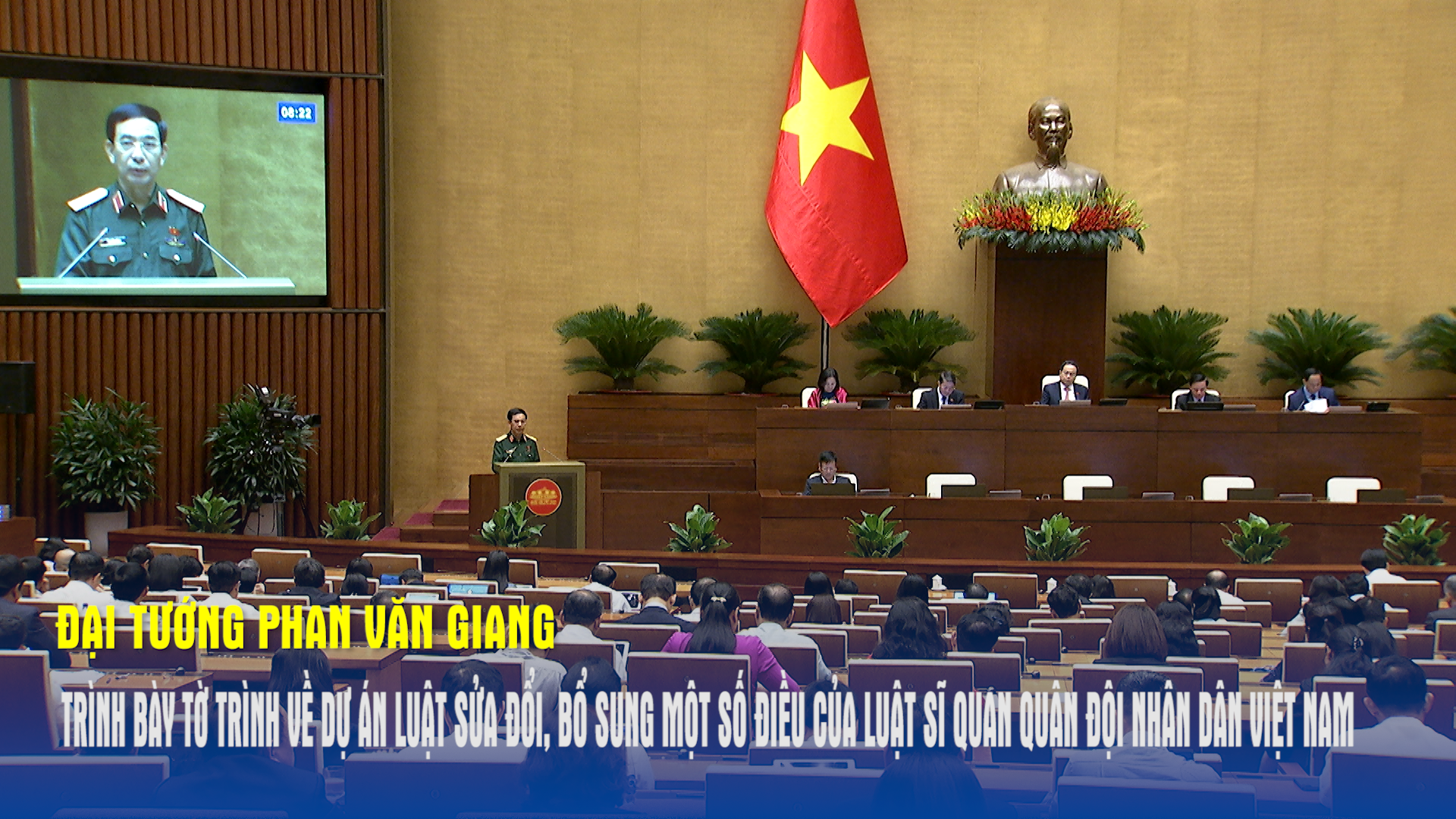 Chiều 28-10, tiếp tục chương trình làm việc Kỳ họp thứ tám, Quốc hội họp phiên toàn thể tại hội trường, nghe Đại tướng Phan Văn Giang, Ủy viên Bộ Chính trị, Phó bí thư Quân ủy Trung ương, Bộ trưởng Bộ Quốc phòng, thừa ủy quyền của Thủ tướng Chính phủ, trình bày Tờ trình về dự án Luật sửa đổi, bổ sung một số điều của Luật Sĩ quan Quân đội nhân dân (QĐND) Việt Nam.