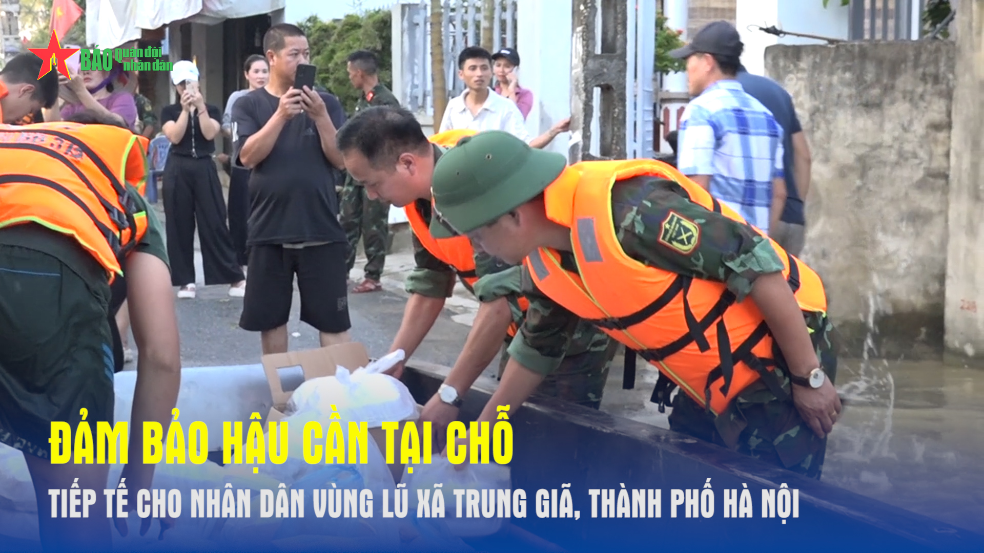 Đảm bảo hậu cần tại chỗ, tiếp tế cho nhân dân vùng lũ xã Trung Giã, TP Hà Nội