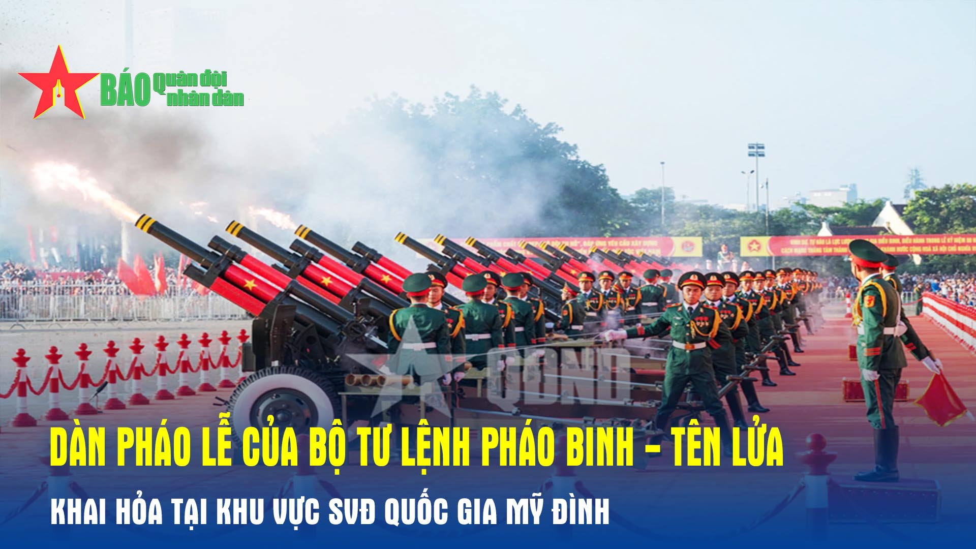 Dàn pháo lễ của Bộ tư lệnh Pháo binh - Tên lửa khai hỏa tại khu vực SVĐ Quốc gia Mỹ Đình