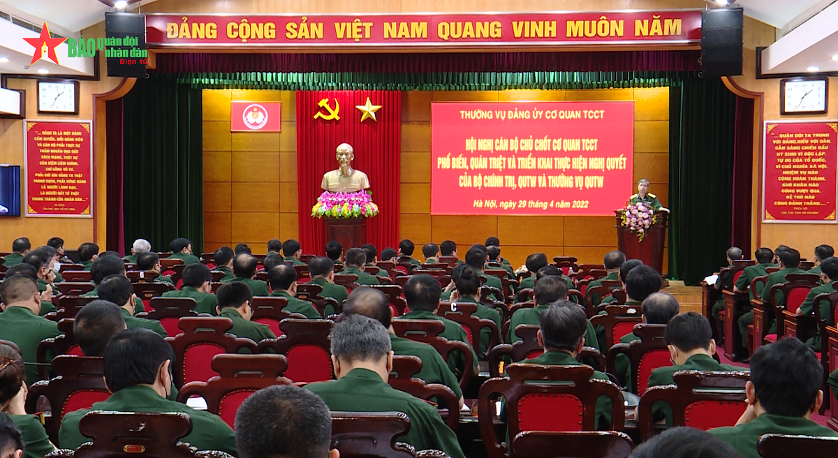 Chiều 29-4, Đảng ủy Cơ quan Tổng cục Chính trị tổ chức Hội nghị cán bộ chủ chốt phổ biến, quán triệt, triển khai thực hiện Nghị quyết của Bộ Chính trị, Quân ủy Trung ương và Thường vụ Quân ủy Trung ương.
