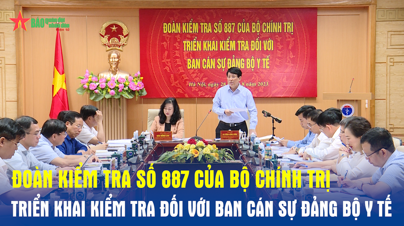 Đoàn kiểm tra số 887 của Bộ Chính trị triển khai kiểm tra đối với Ban cán sự đảng Bộ Y tế về việc lãnh đạo, chỉ đạo và tổ chức thực hiện công tác cán bộ theo tinh thần Nghị quyết Đại hội XIII của Đảng và Nghị quyết số 26-NQ/TW ngày 19-5-2018 của Ban Chấp hành Trung ương Đảng khóa XII về tập trung xây dựng đội ngũ cán bộ các cấp, nhất là cấp chiến lược, đủ phẩm chất, năng lực và uy tín, ngang tầm nhiệm vụ (Nghị quyết 26)